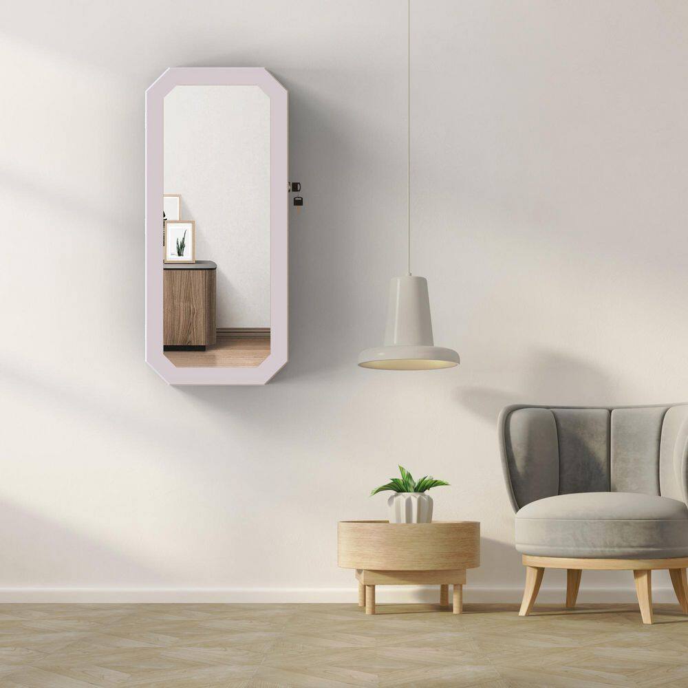 Unbranded Octagon White Rimmed Mirror Fashion Simple Jewelry Storage Cabinet