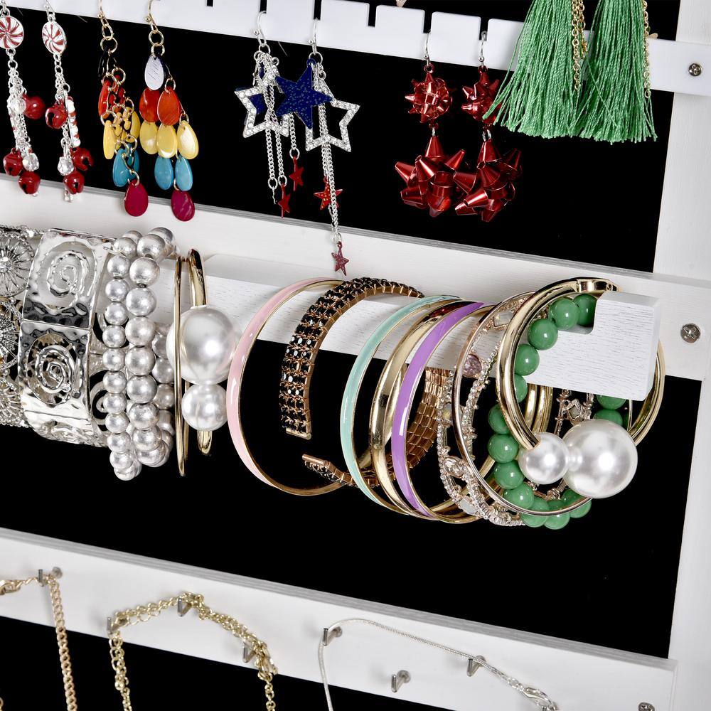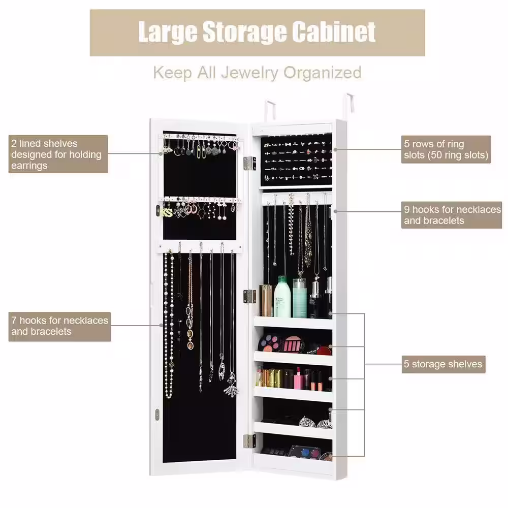 ANGELES HOME White Wall And Door Mirrored Jewelry Cabinet With LED Light