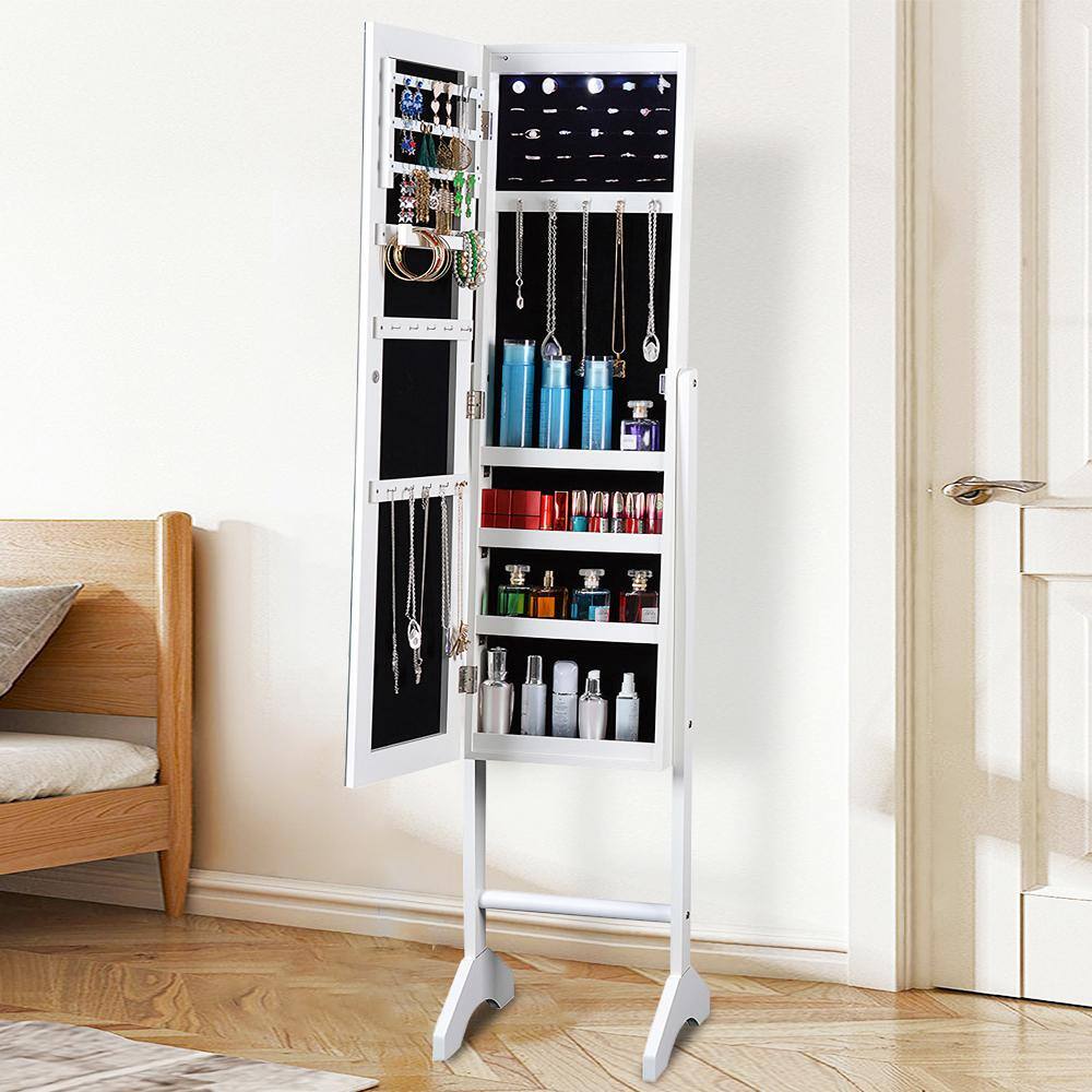 Unbranded White Full Mirror Fashion Simple Jewelry Storage Cabinet with Led Light