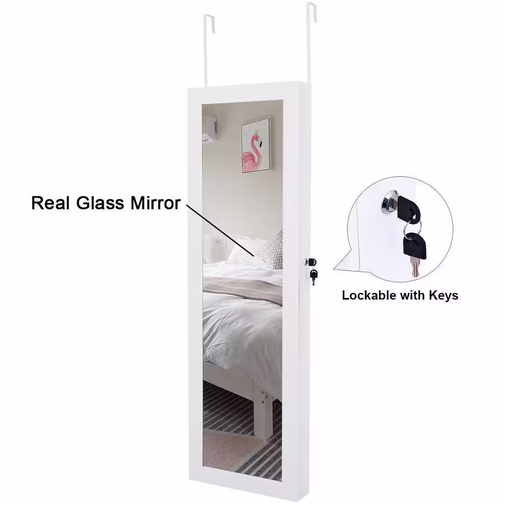 None Rectangular White MDF Full Mirror Jewelry Storage Cabinet With with Slide Rail Can Be Hung on the Door or Wall
