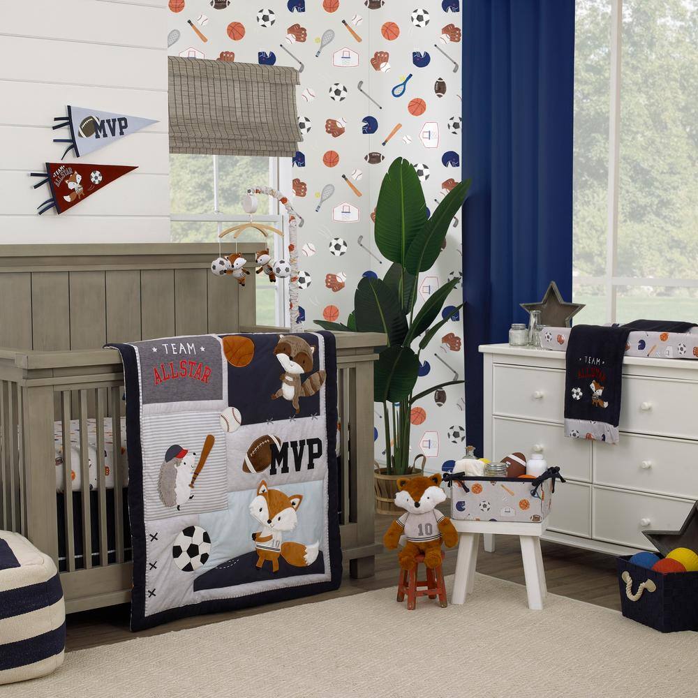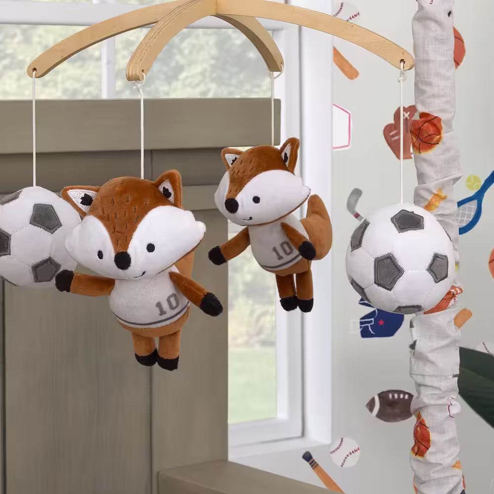 NoJo Team All Star Brown, White, Black and Grey, Fox with Soccer Balls Plush Musical Mobile