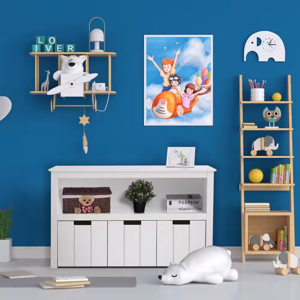 VEIKOUS Kids Furniture Child Storage Cabinet Open Bookcase Reading Nook with Cushions