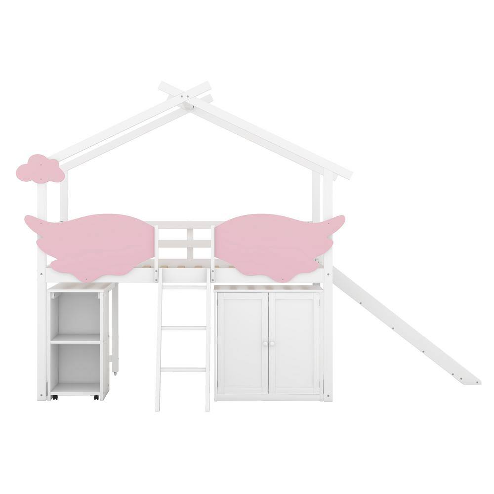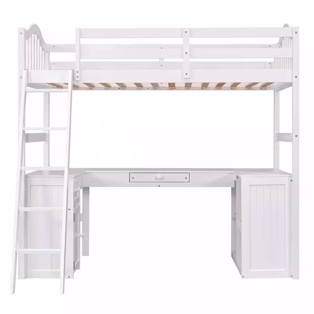 Harper & Bright Designs White Twin Size Wooden Loft Bed with Drawers, Cabinet, Shelves and Desk