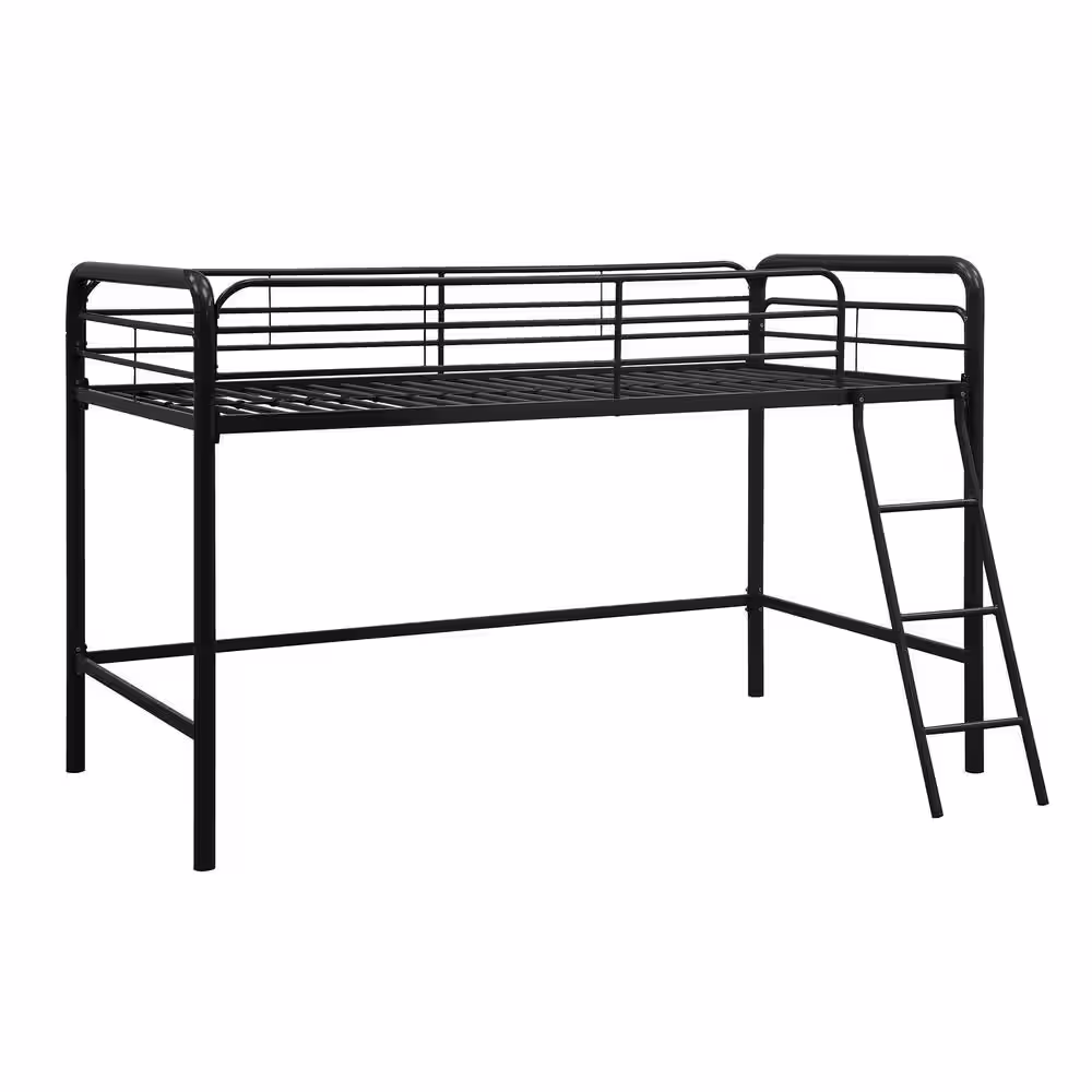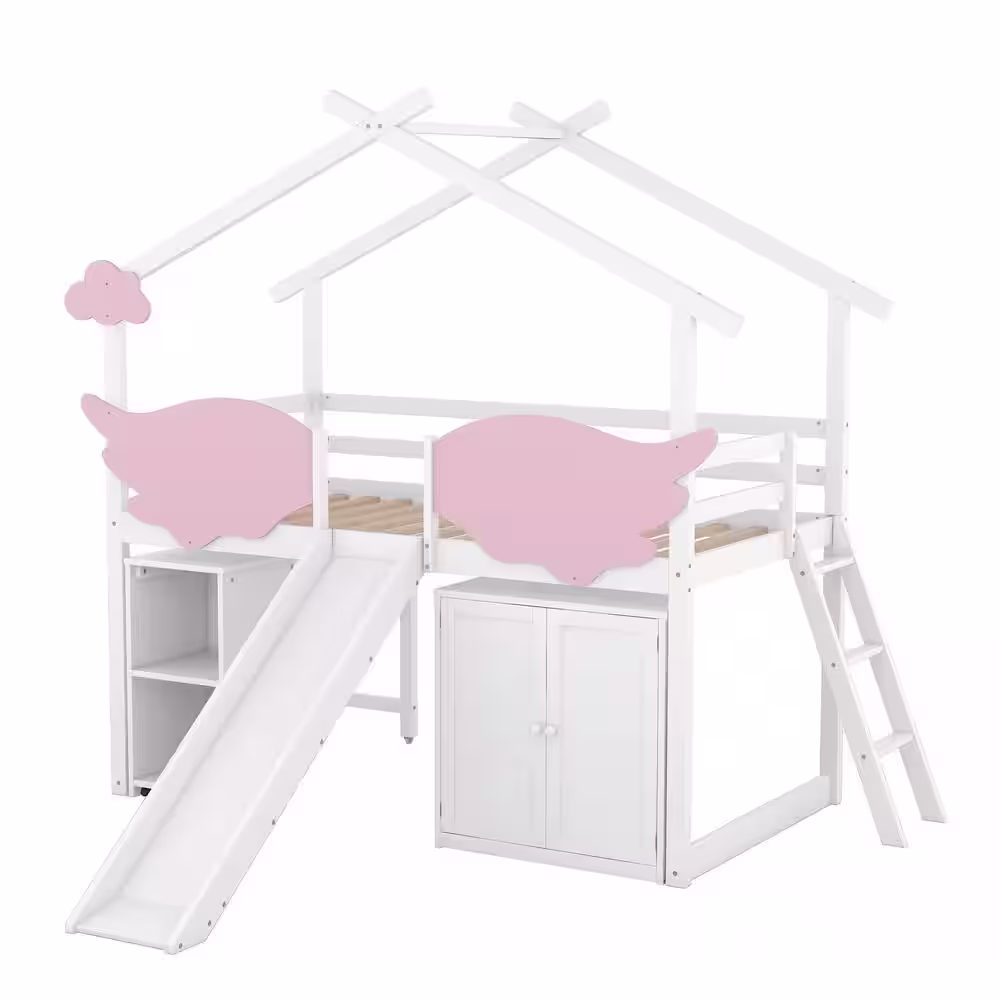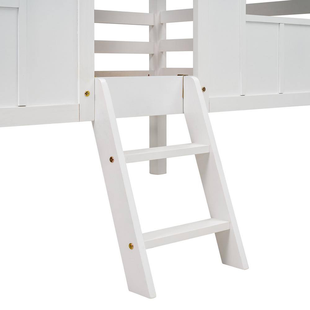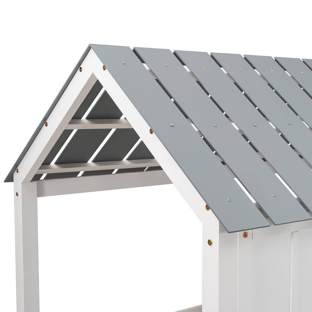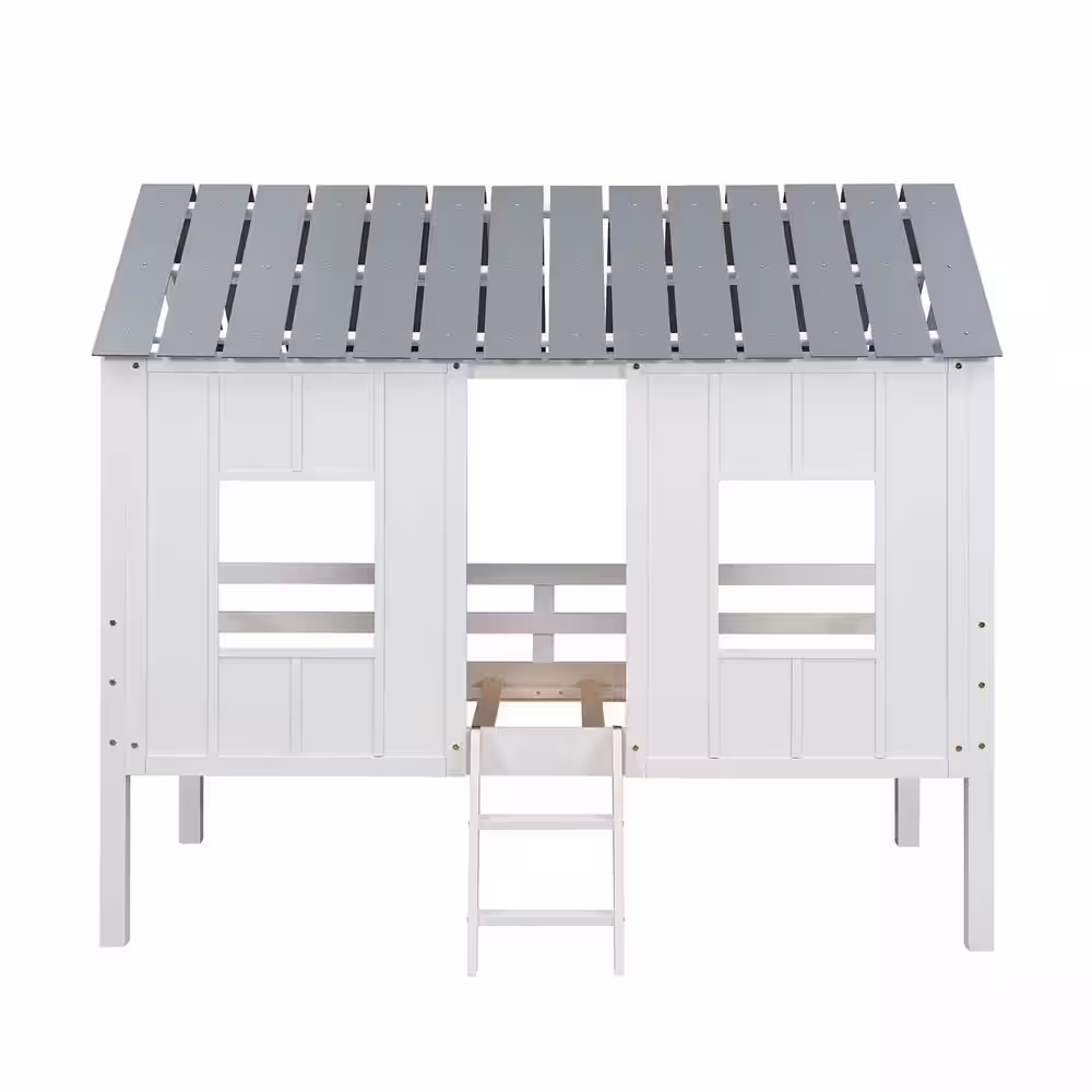 Harper & Bright Designs WhiteTwin Size Low Loft House Bed with Roof and Two Front Windows
