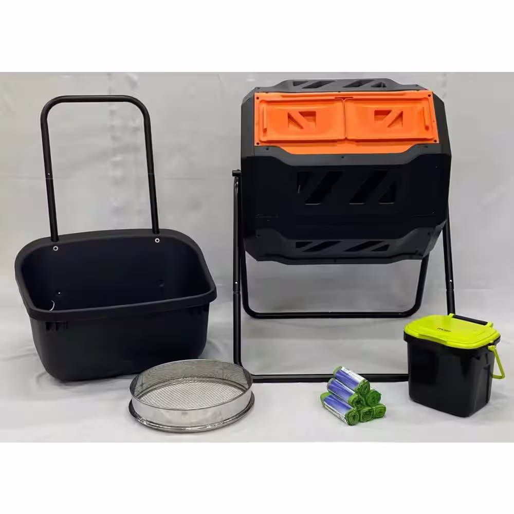 None Jumbo 8 Gal. Kitchen Compost Caddy with Replacement Filters and Biodegradable Bags