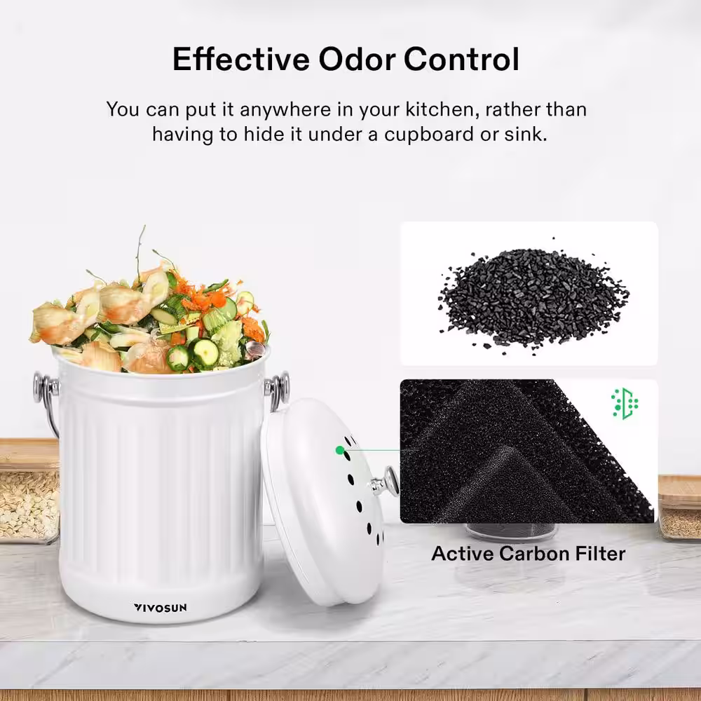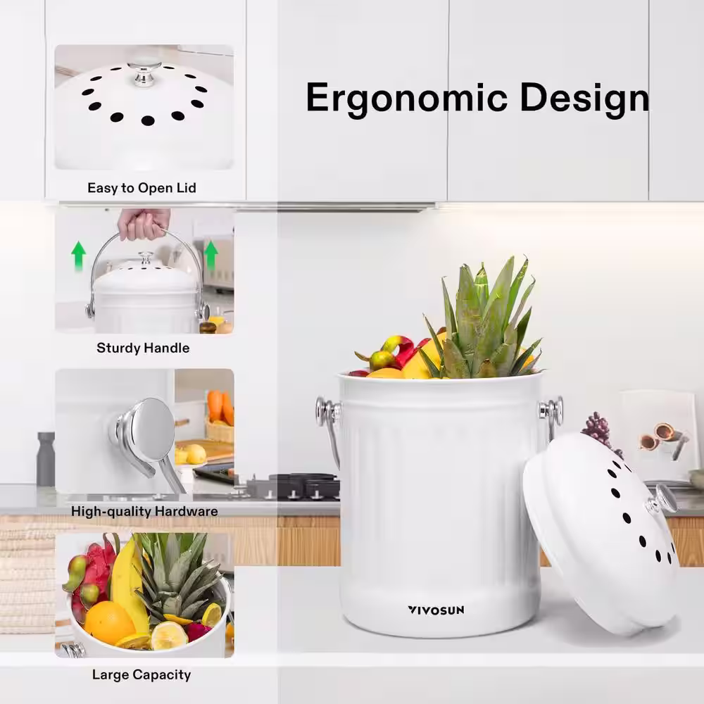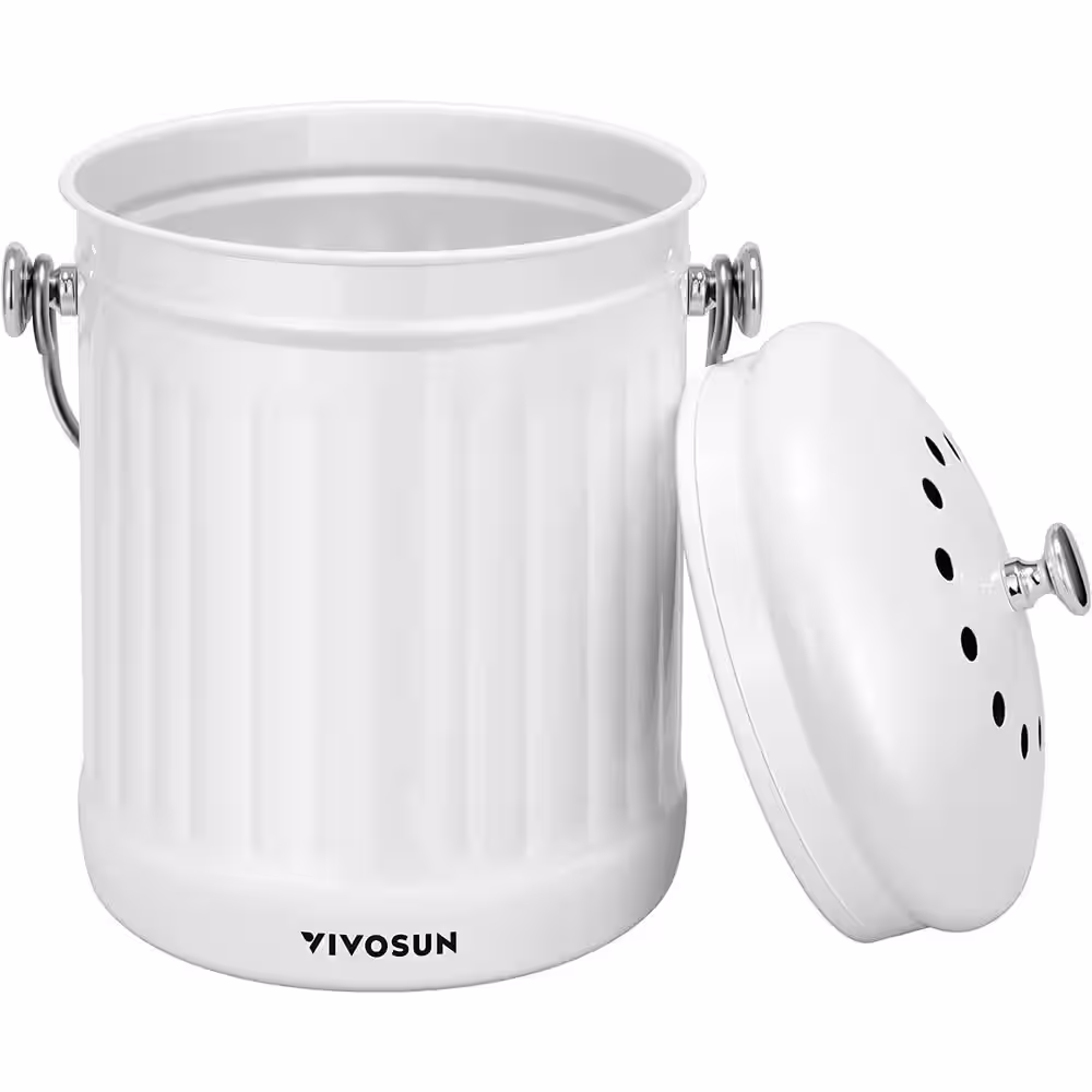 VIVOSUN Indoor 1.3 Gal. Stainless Steel Countertop Compost Bin with Lid for Kitchen Food Waste in White