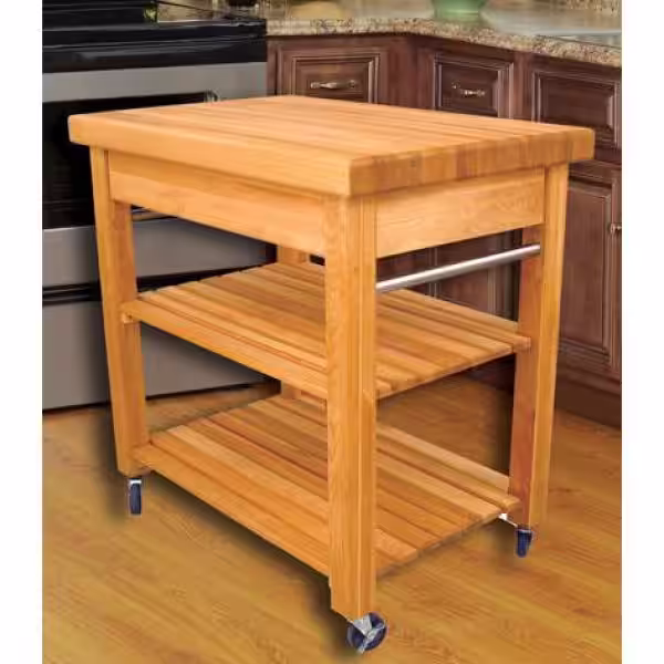 Catskill Craftsmen French Country Natural Wood Kitchen Cart with Storage