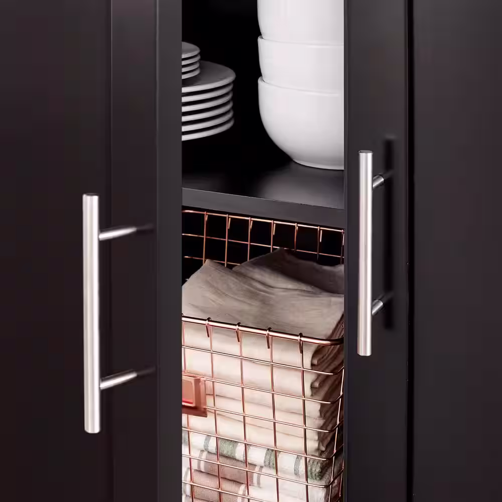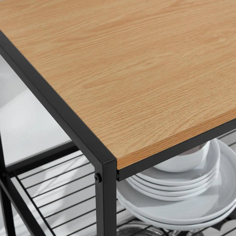 StyleWell Industrial Black Metal Rolling Kitchen Microwave Cart with Wooden Top and 2-Tier Shelving (24" W)