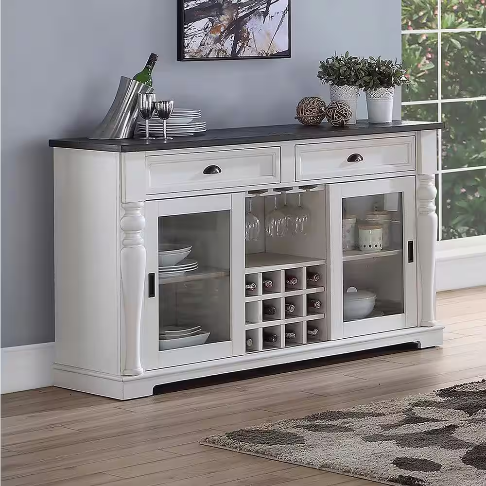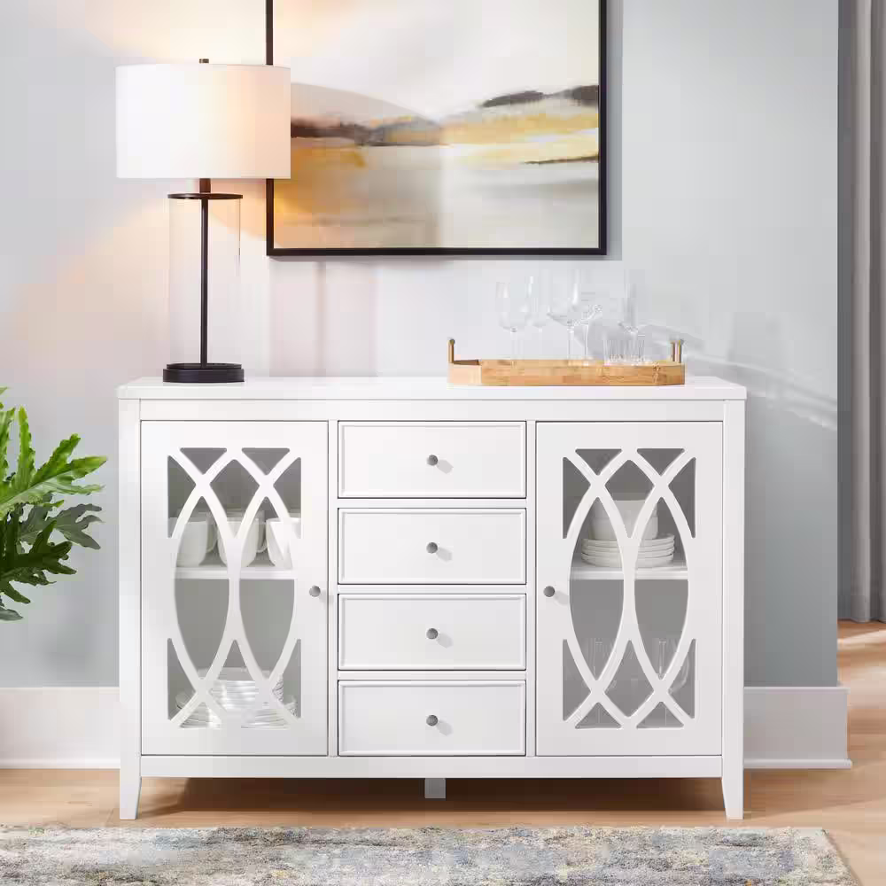 Home Decorators Collection Cliffmore White Glass Door Buffet with Elliptical Pattern