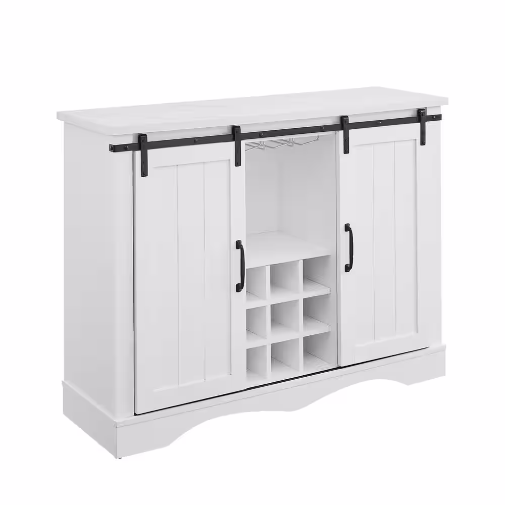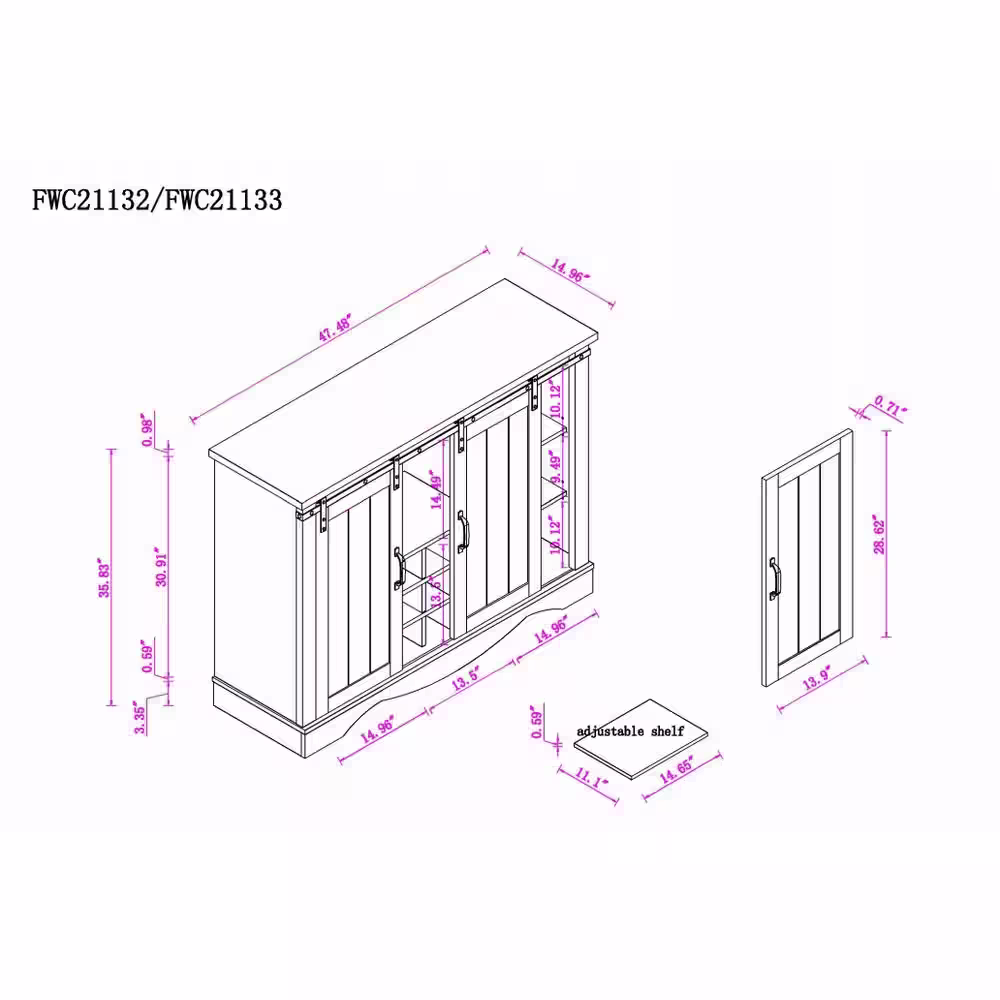 FESTIVO 47 in. White Wood Buffet Bar Cabinet with Barn Door with Marbling Pattern Countertop