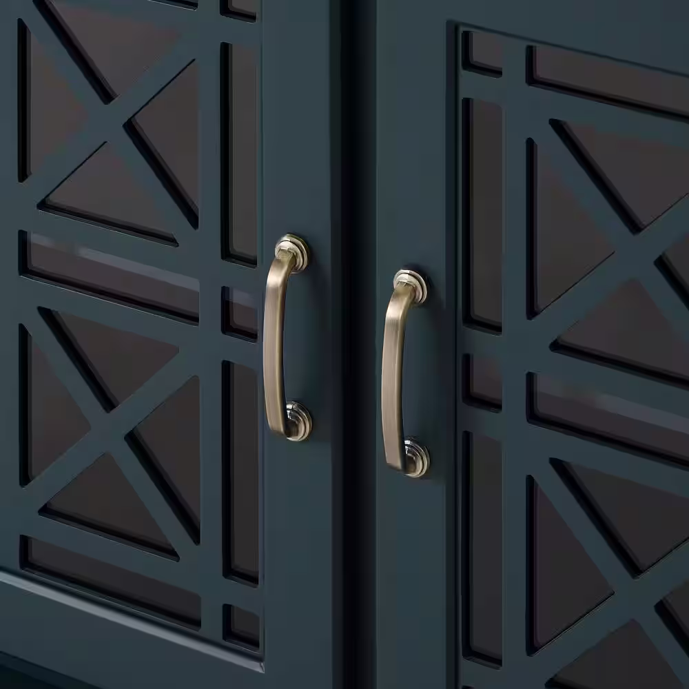 Welwick Designs Landon Fretwork 60 in. Dark Teal 4-Door Sideboard with 3-Drawers