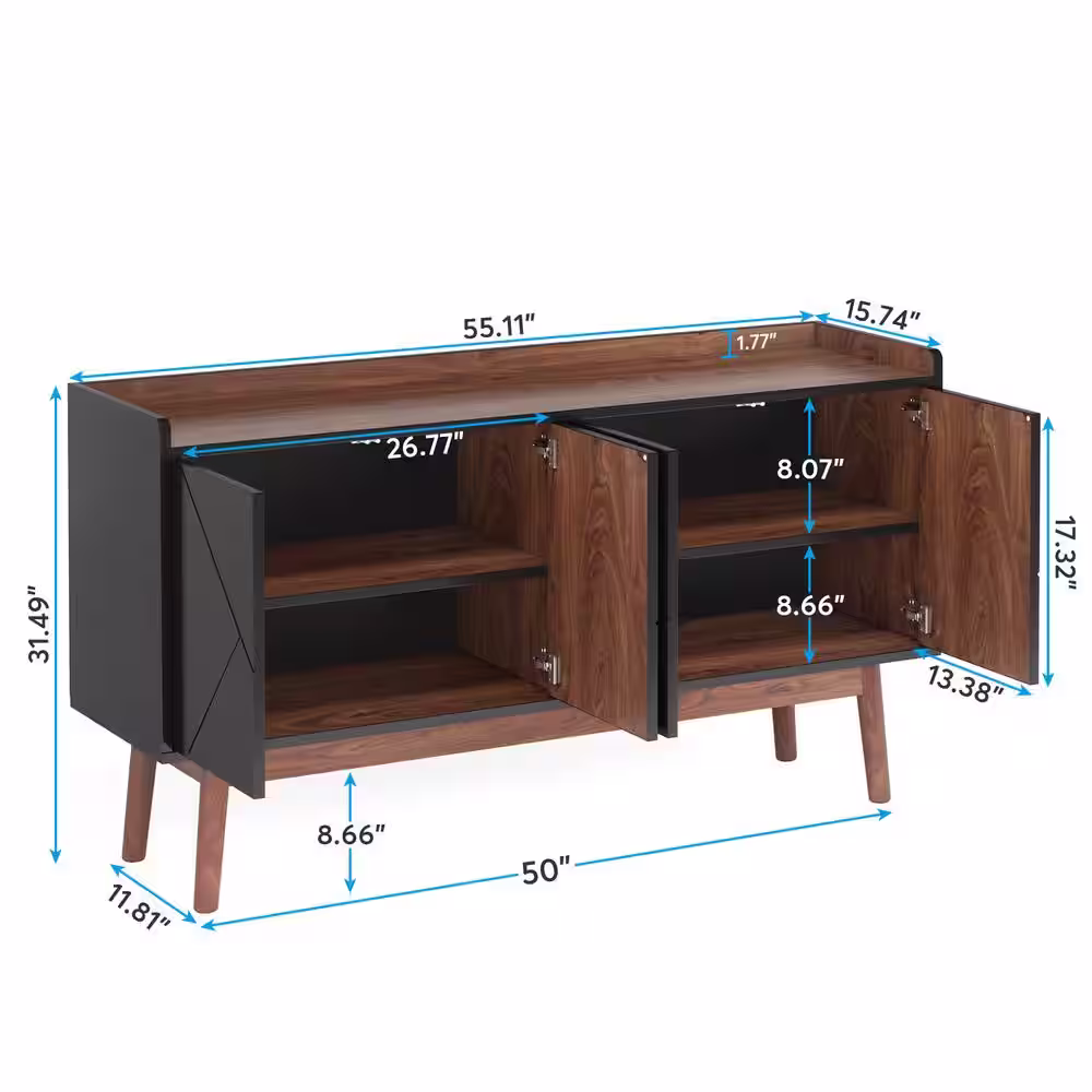 None Ahlivia Black Wood 55 in. W Buffet Cabinet Sideboards with 2-Door and Open Tabletop Storage