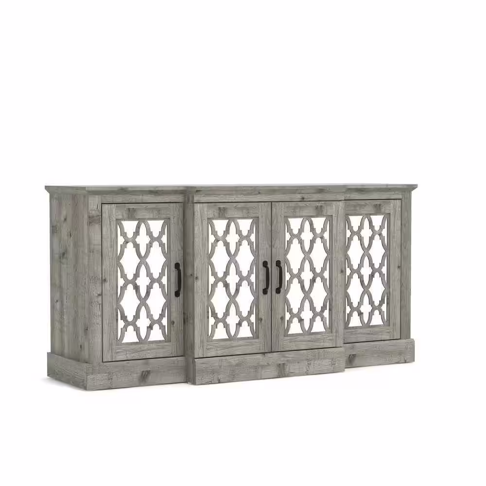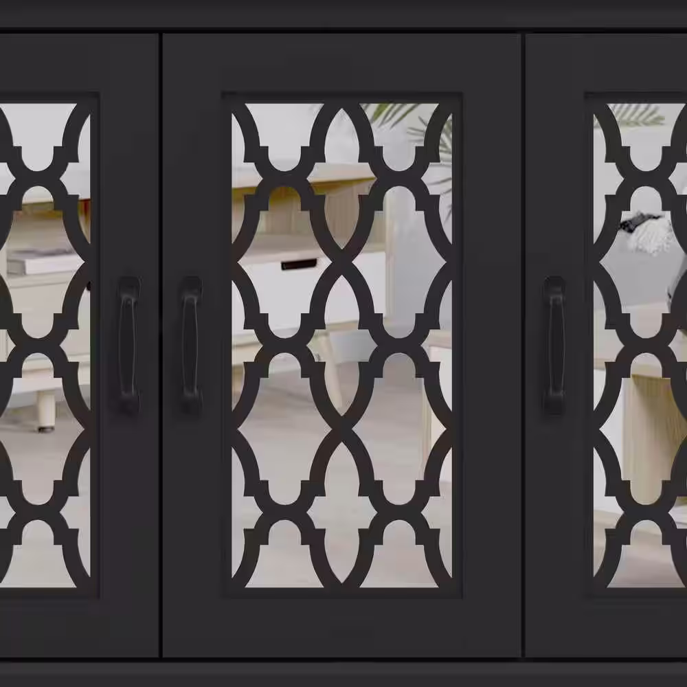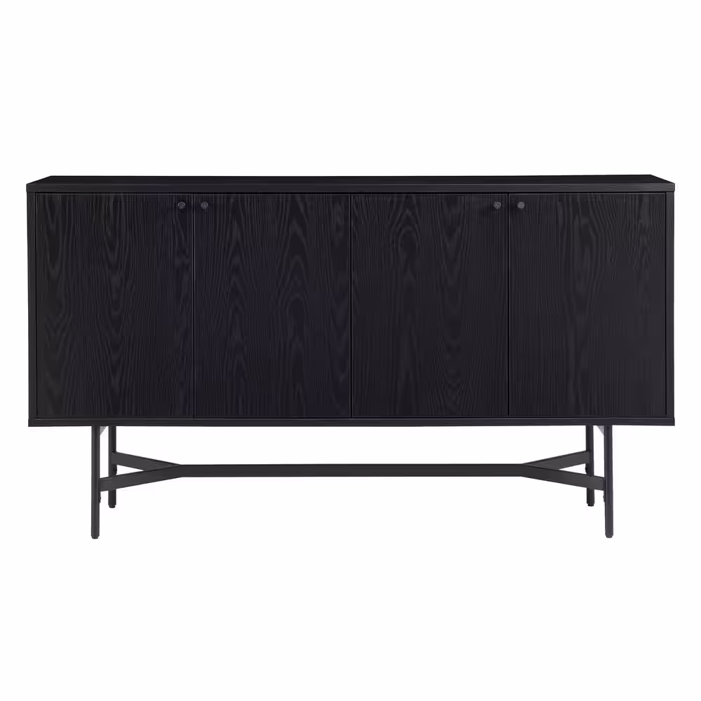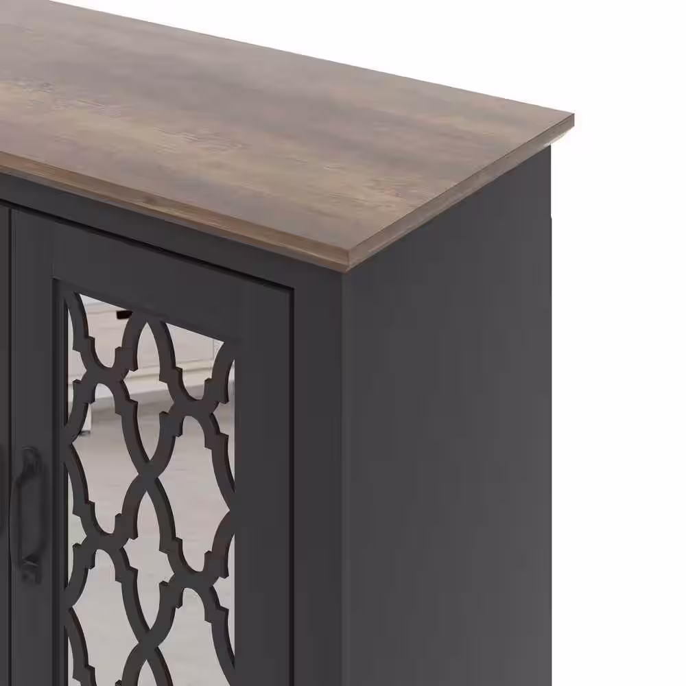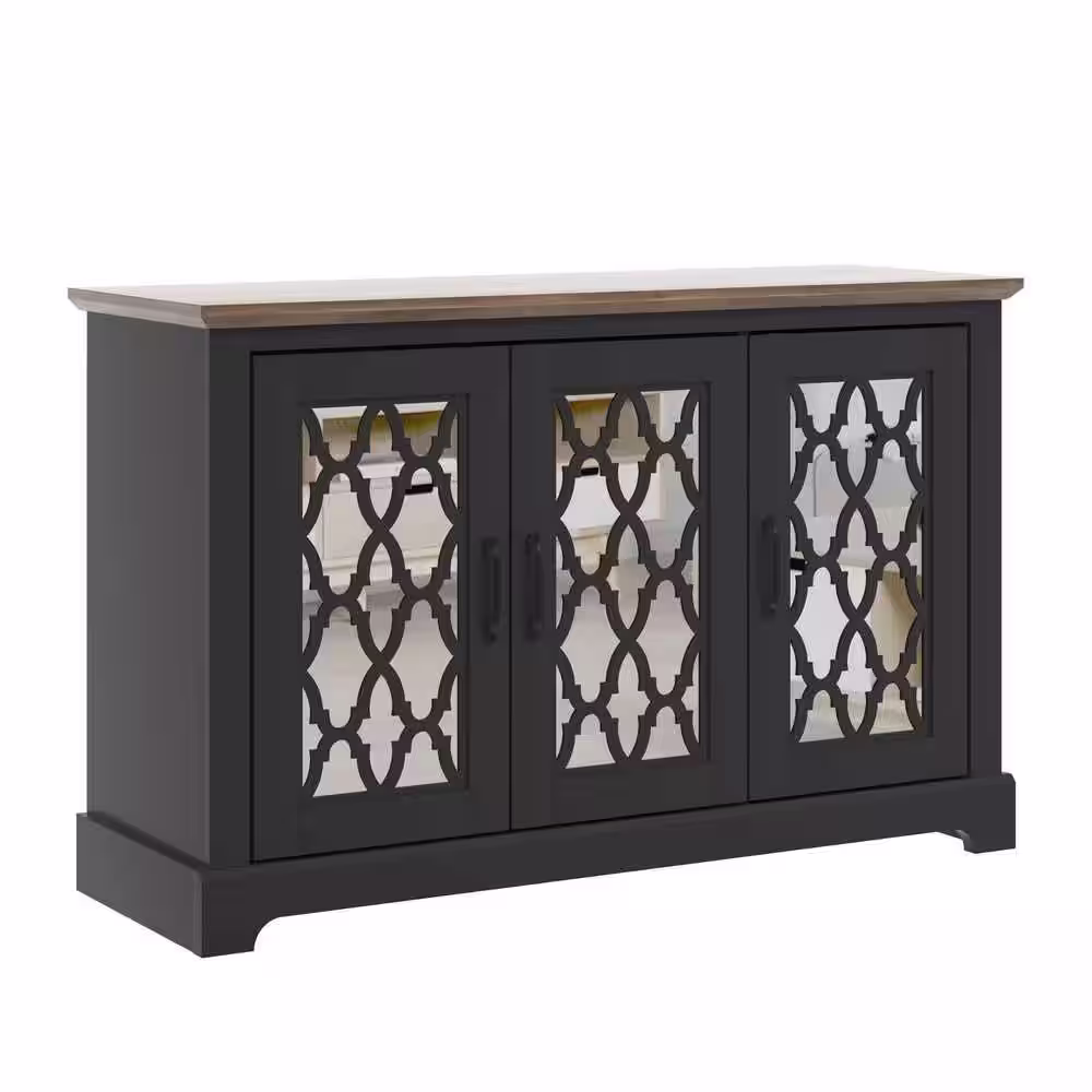 GALANO Heron 45.8 in. Composite Top Black with Knotty Oak 3-Door Wide Sideboard