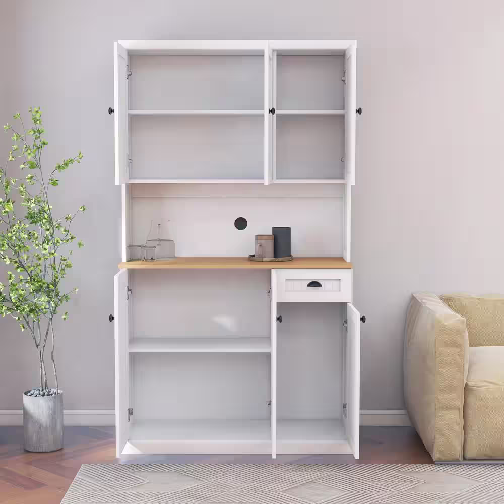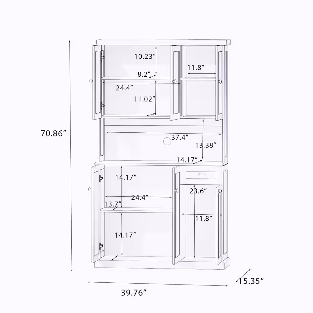 None White MDF Wood 39.76 in. Buffet with Hutch, Kitchen Storage Cabinet, Sideboard with Wide Countertop