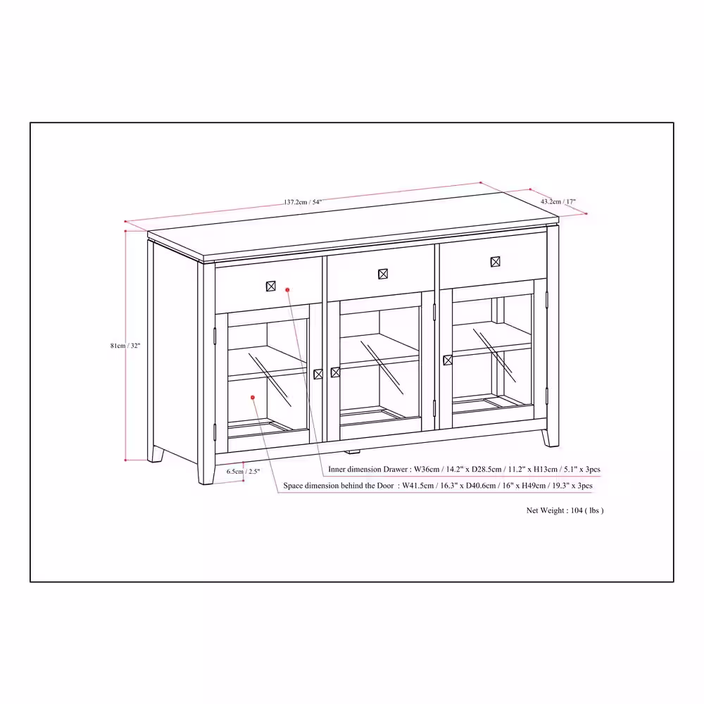 Simpli Home Cosmopolitan Solid Wood 54 in. Wide Contemporary Sideboard Buffet in MahoganyTempered Glass