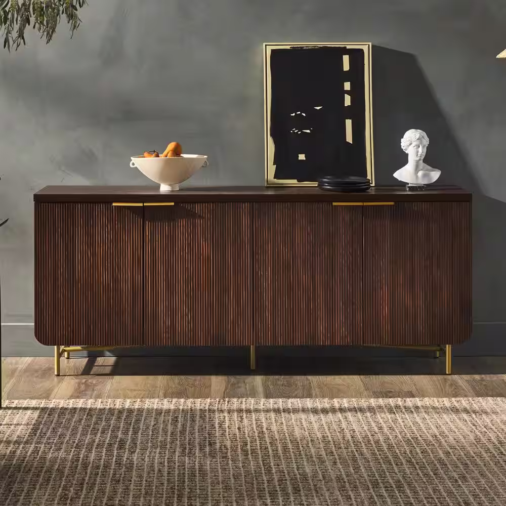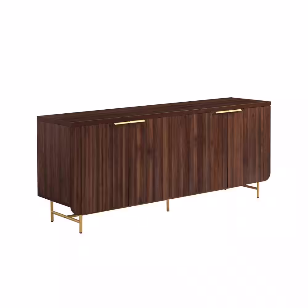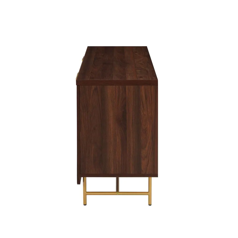 Welwick Designs Dark Walnut/Gold Wood and Metal Modern Reeded 4-Door Sideboard