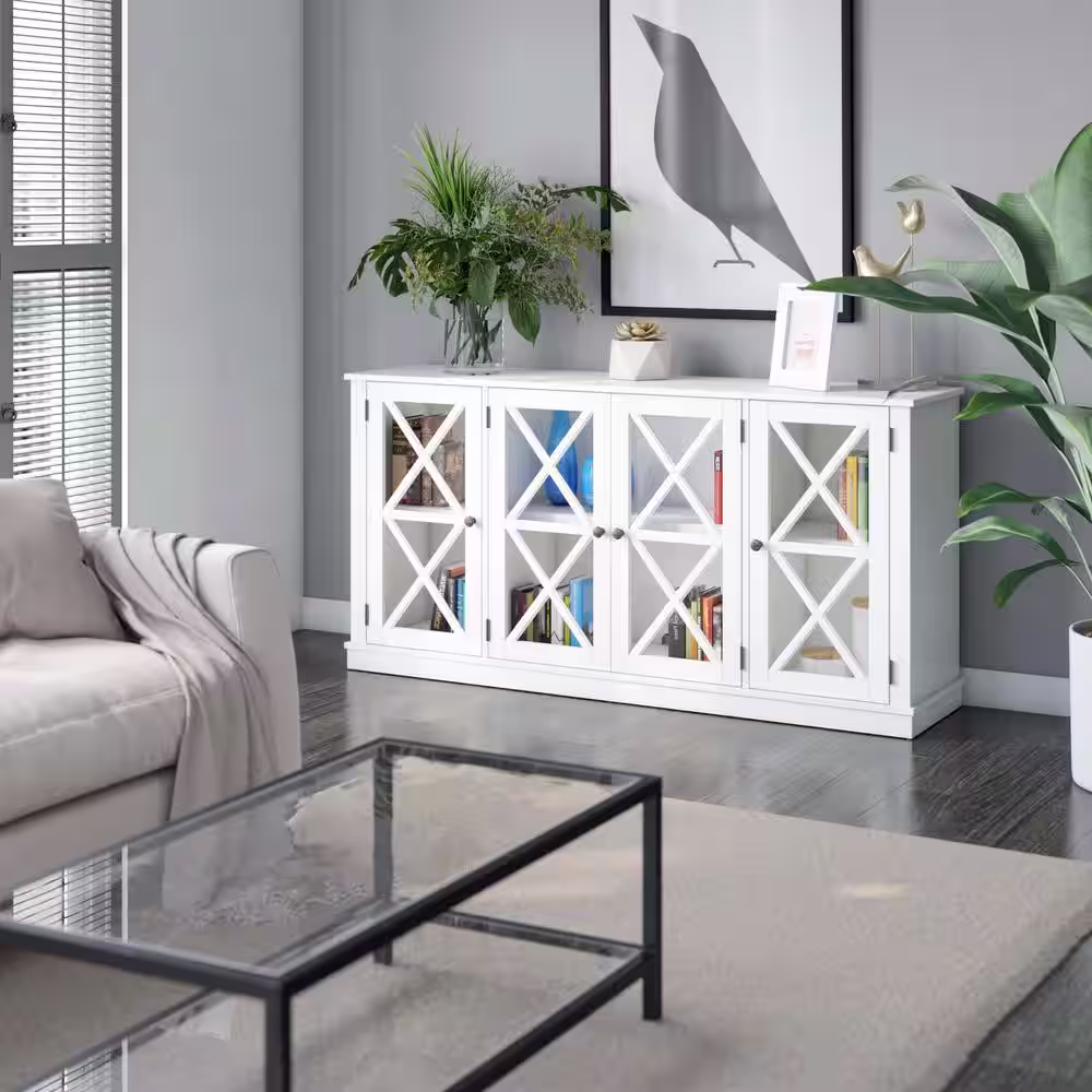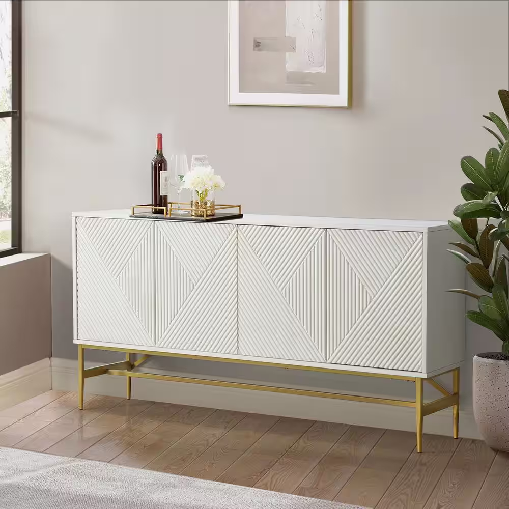 JAYDEN CREATION Wemher White 65 in. Wide Sideboard with Adjustable Shelves