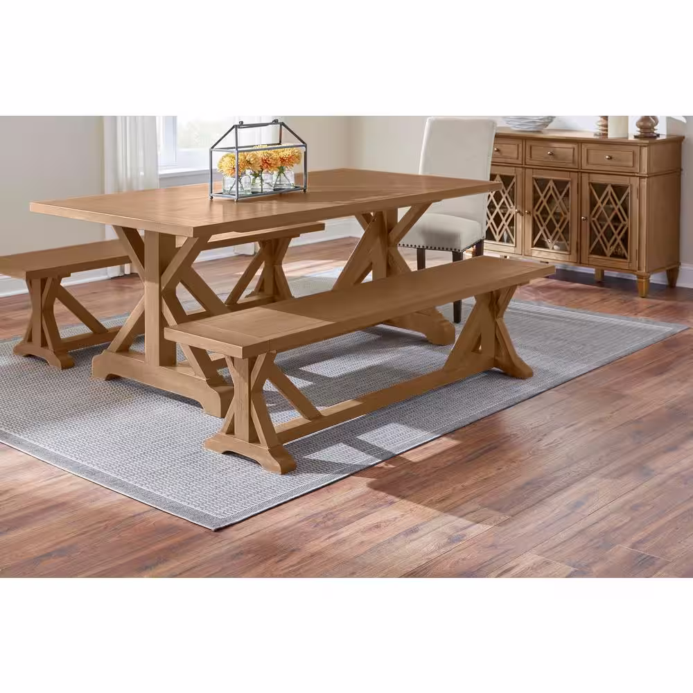 Furniture of America Reina Rustic Natural Tone Wood 90 in. Trestle Extendable Dining Table Seats 8