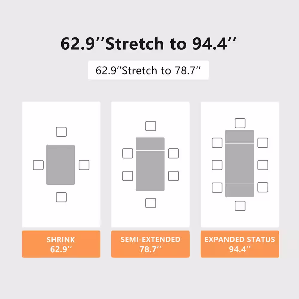 None 62.9 in. to 94.4 in. Rectangle White Stone Extendable Dining Table