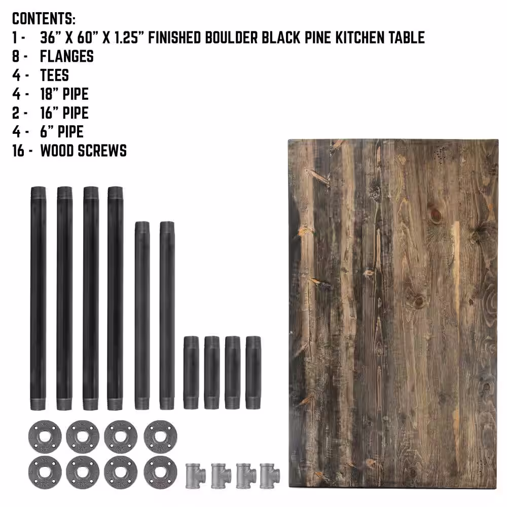 PIPE DECOR 60 in. x 36 in. x 29.5 in. Boulder Black Restore Wood Dining Table with Industrial Steel Pipe Legs
