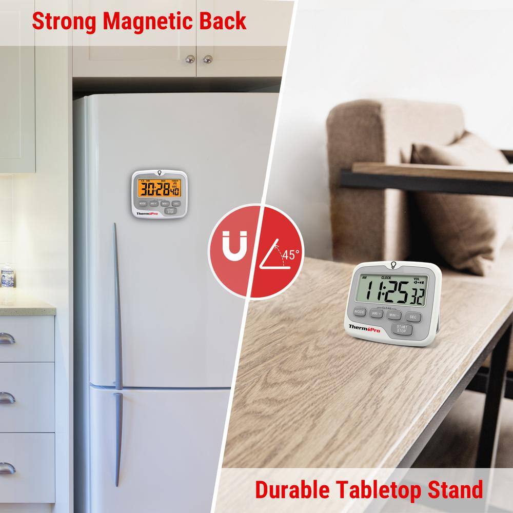 ThermoPro TM02W Digital Kitchen Timer with Adjustable Loud Alarm and Backlight LCD Big Digits