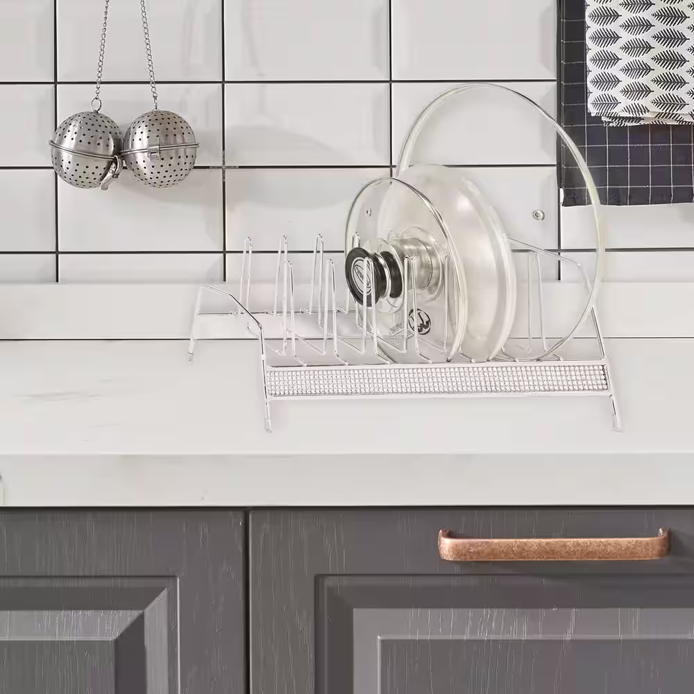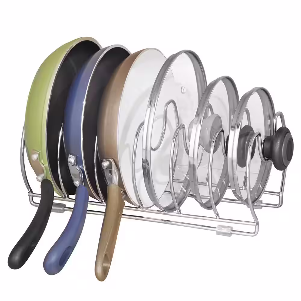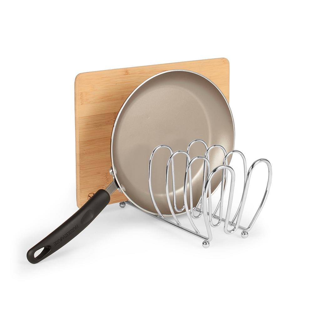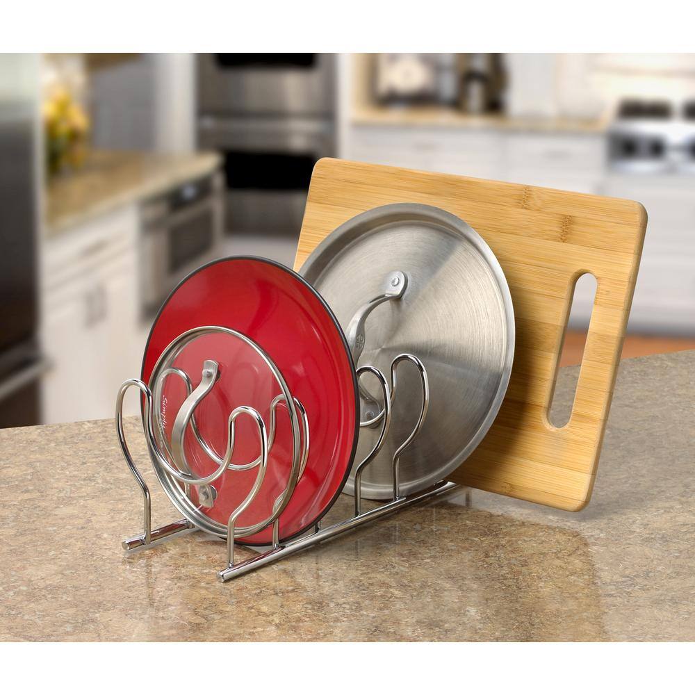Spectrum Lid, Plate & Pan Organizer Rack for Cabinet Organization, Satin Nickel