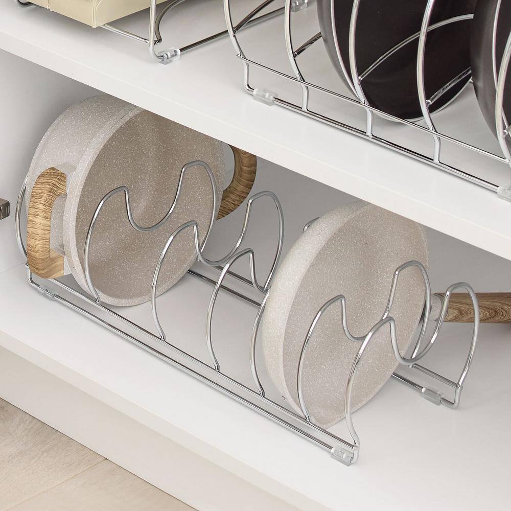 IDESIGN Classico Steel Kitchen Cabinet Cookware Organizer - 13.2" x 6.35" x 5.17", Chrome