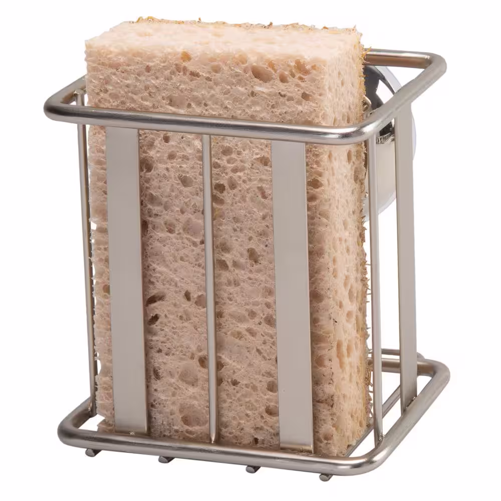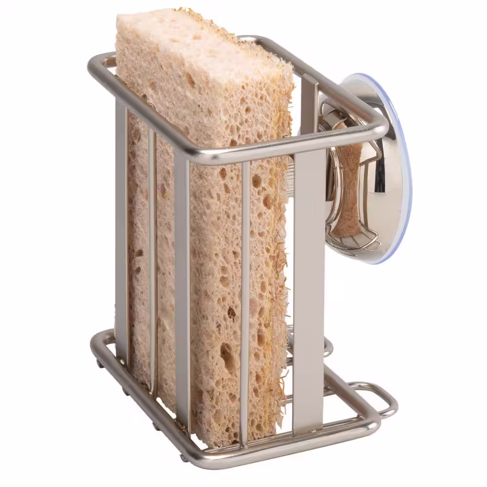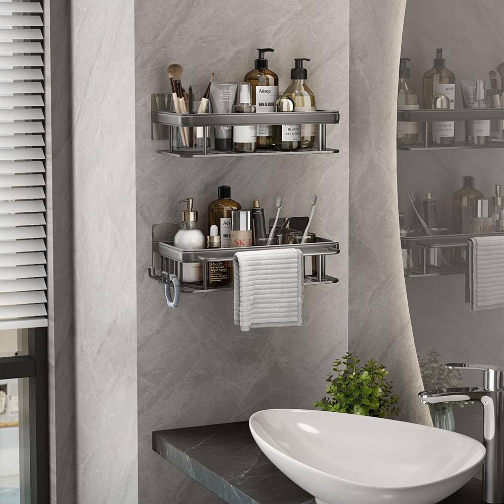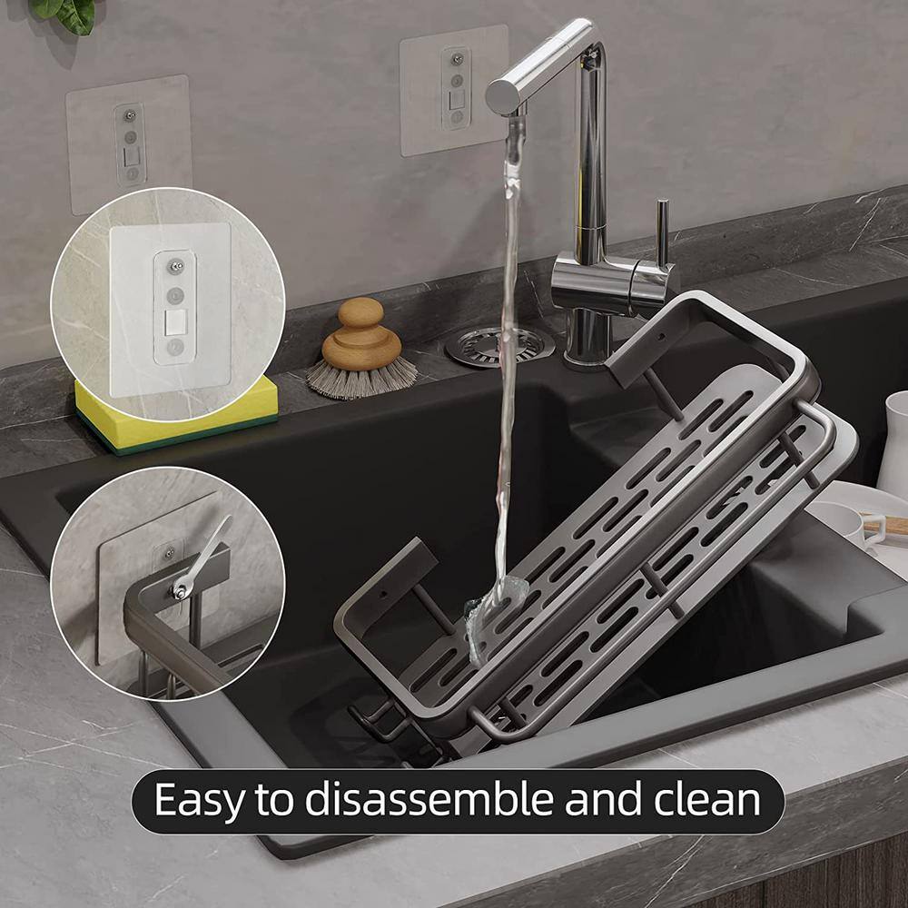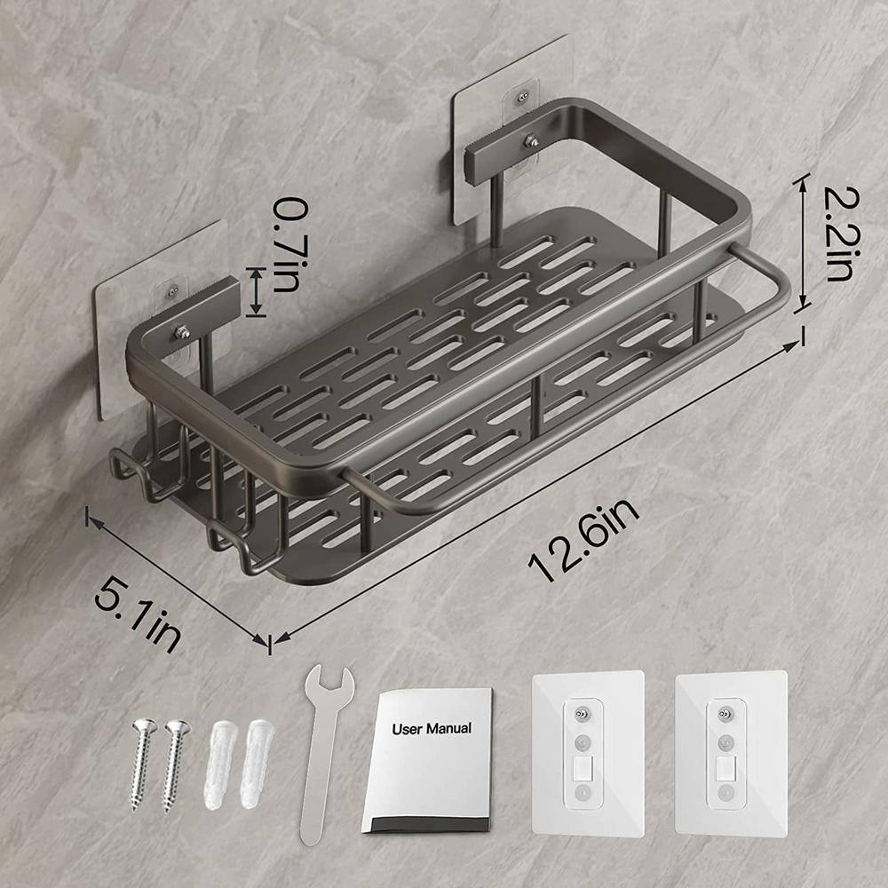 Aoibox 1 Pack Gray Sponge Holder for Kitchen Sink Adhesive Sponge Caddy Shower Shelf with Hooks Stuck No Drilling