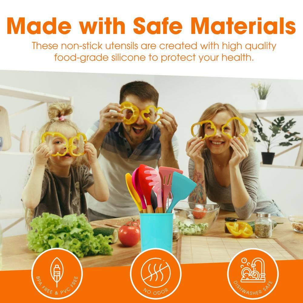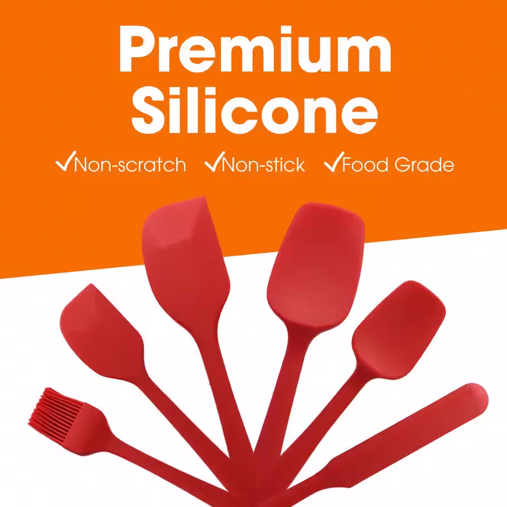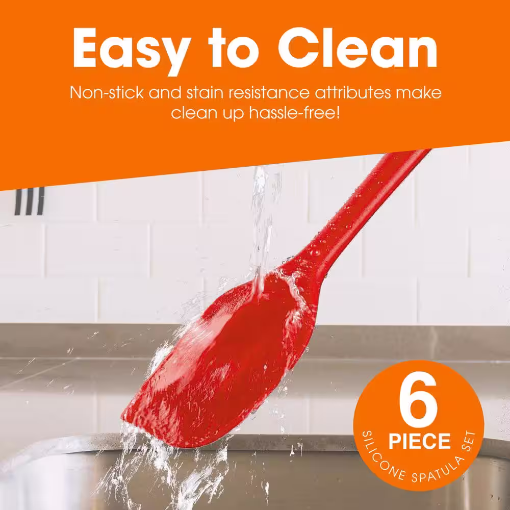 CHEER COLLECTION 6 Piece Red Silicone Spatula Set, For Nonstick Cooking and Baking