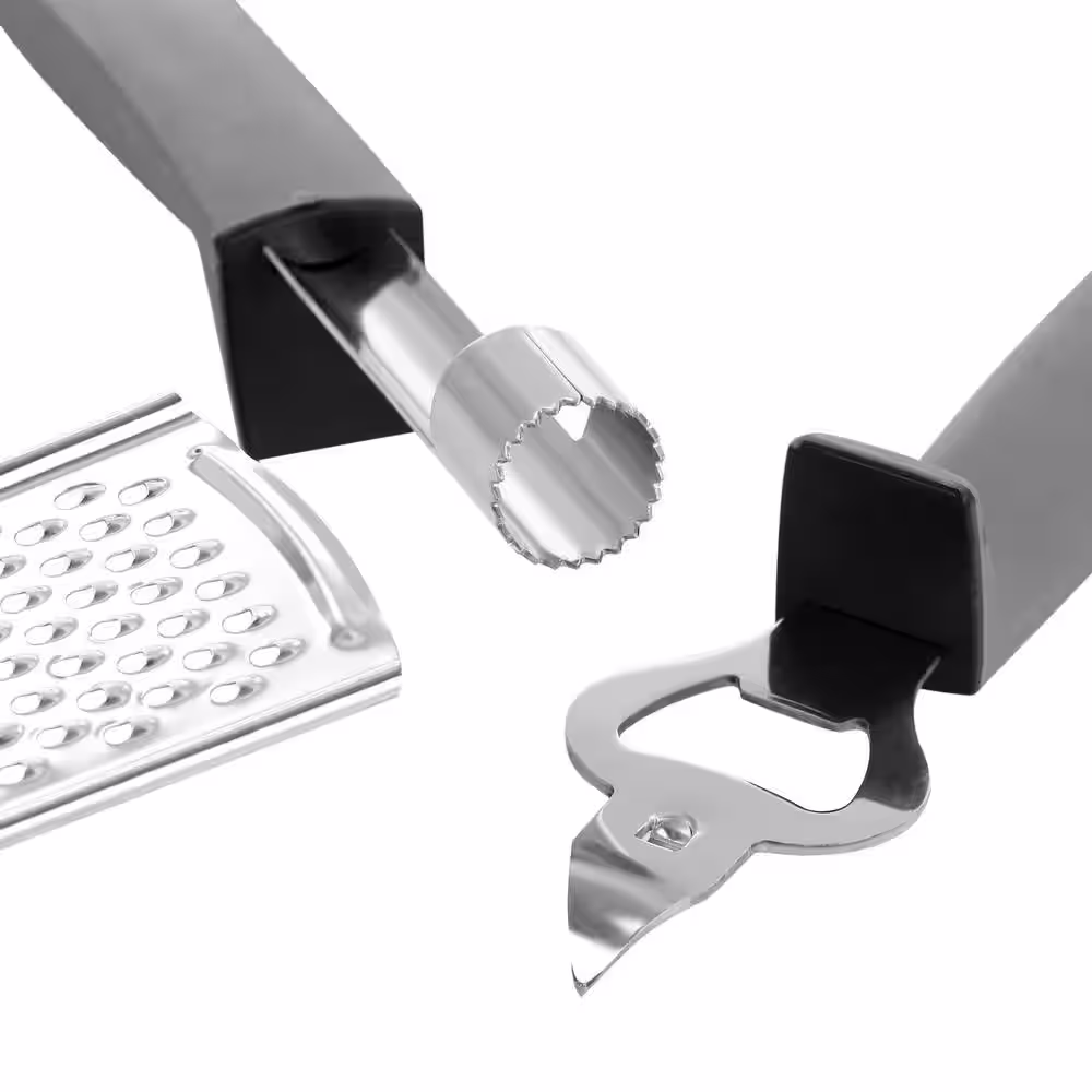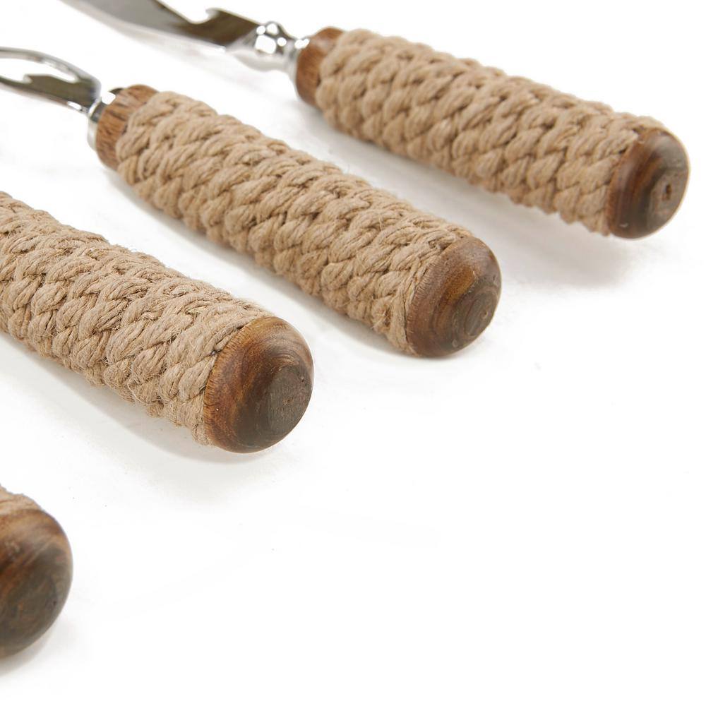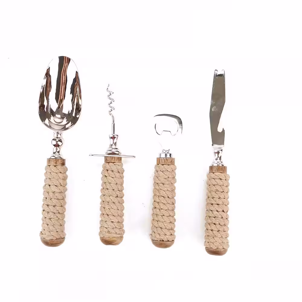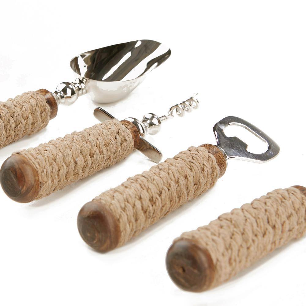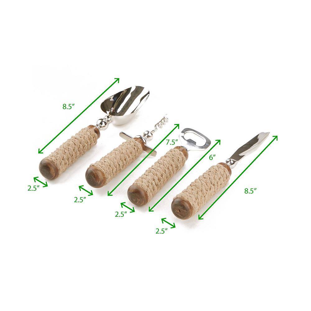 Mind Reader Rope Bar Utensil Set Silver Bottle Opener, Corkscrew, Ice Scoop and Knife 4-Piece Bar Tool Set