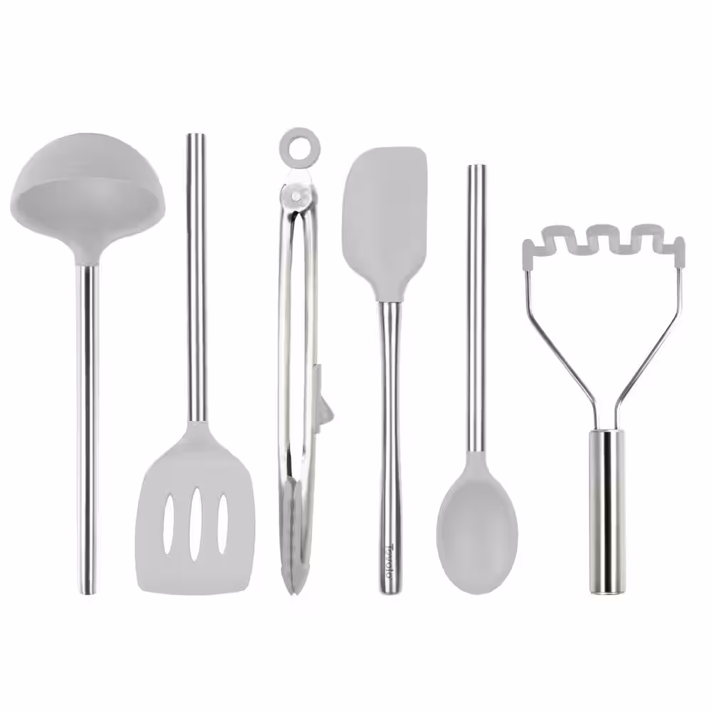 Spectrum Silicone Oyster Gray Utensil for Meal Prep and Cooking (Set of 6)