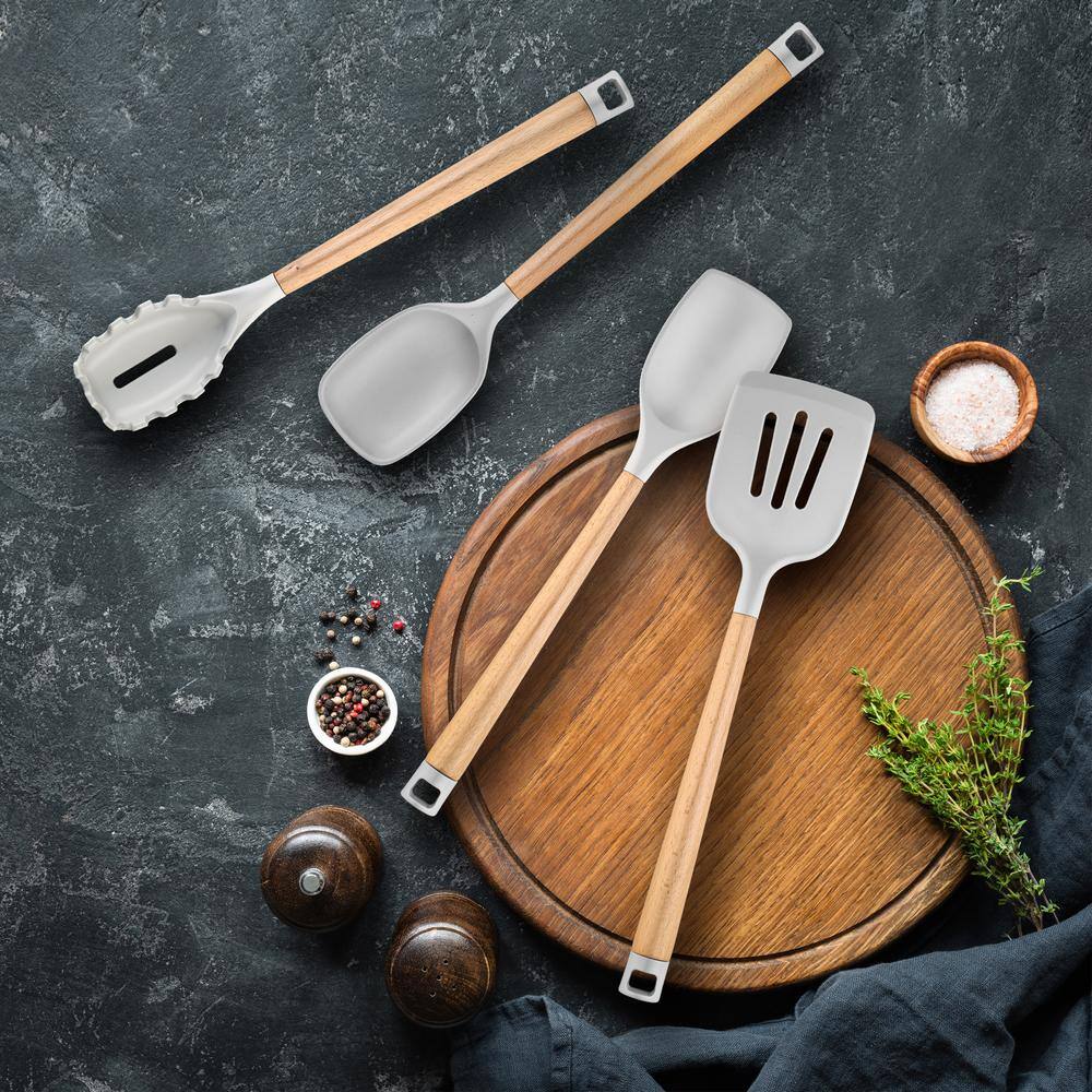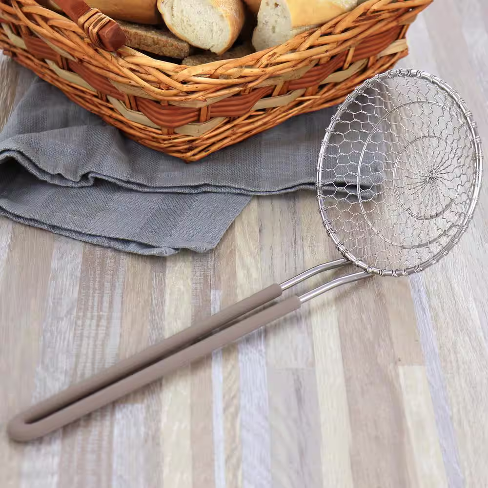 None Stainless Steel Spider Skimmer Kitchen Utensil with Nylon Handle in Light Taupe