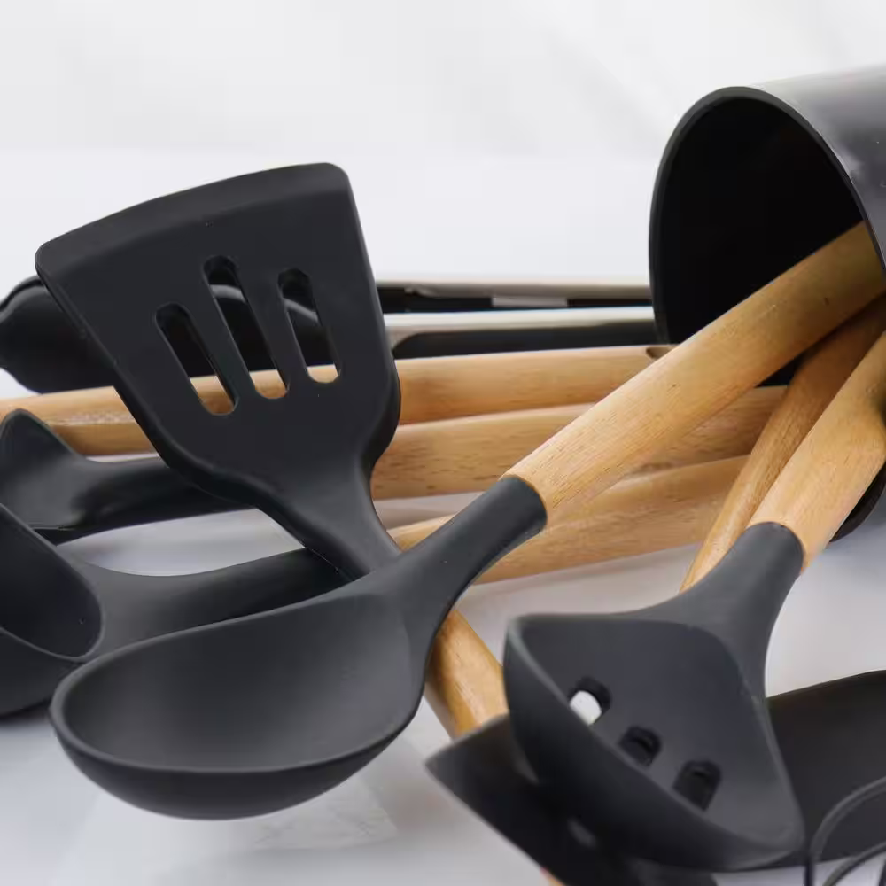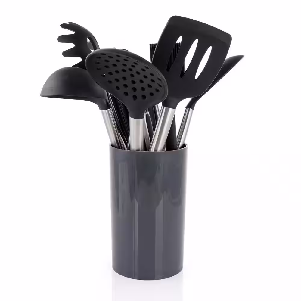 MegaChef Gray Silicone and Stainless Steel Cooking Utensils (Set of 14)