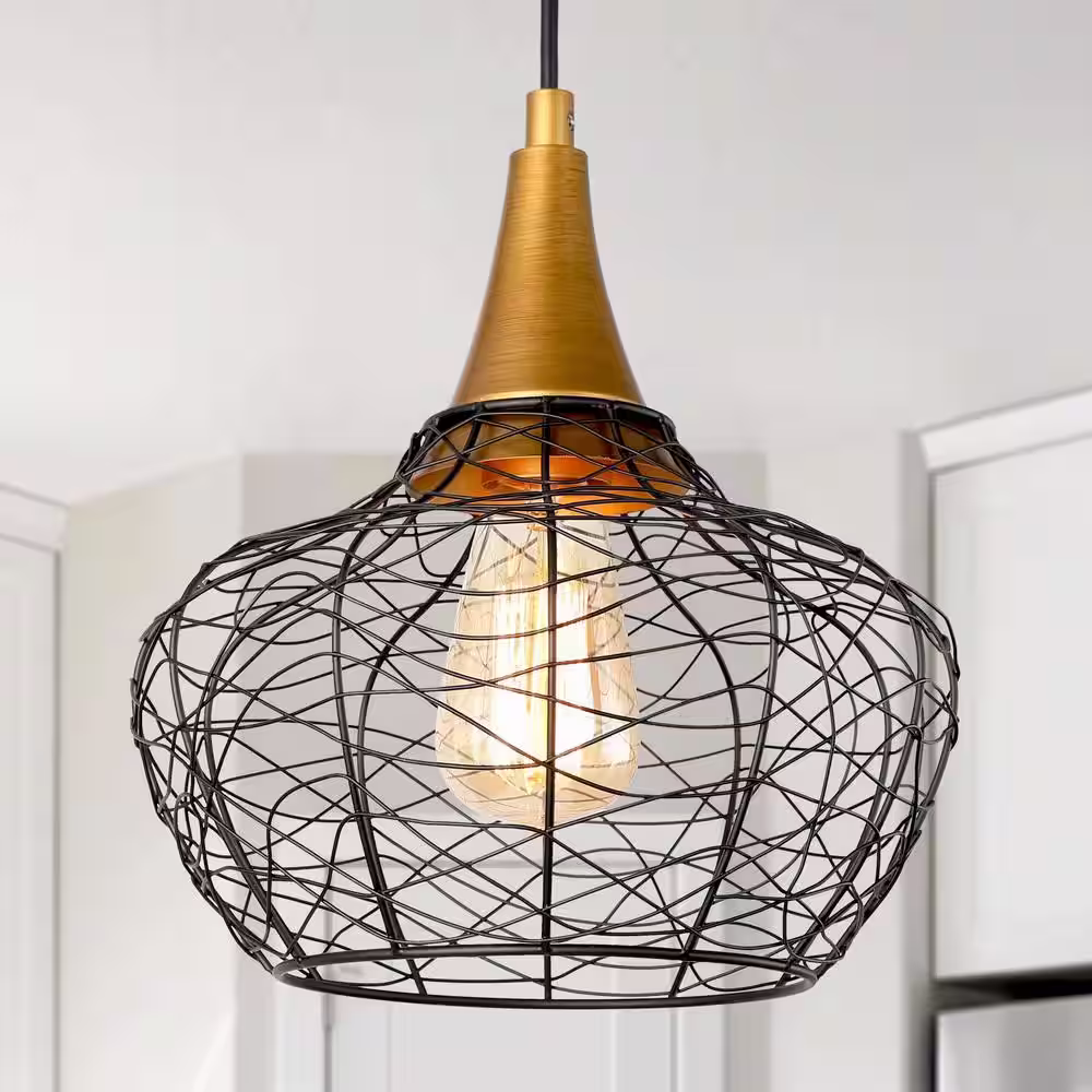 Hampton Bay Mullins 10 in. 1-Light Coal Pendant Hanging Light, Modern Industrial Kitchen Pendant Lighting