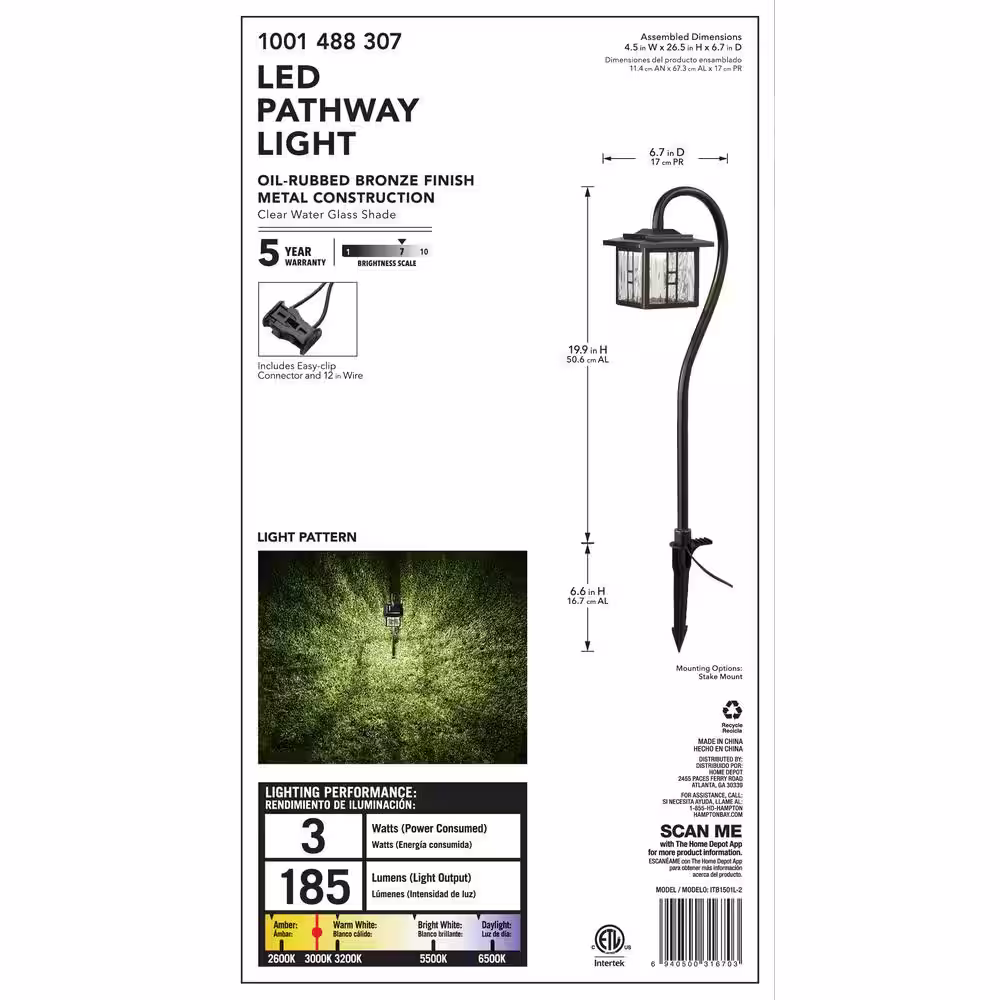 Hampton Bay 15-Watt Equivalent Low Voltage Millennium Black Integrated LED Outdoor Landscape Path Light