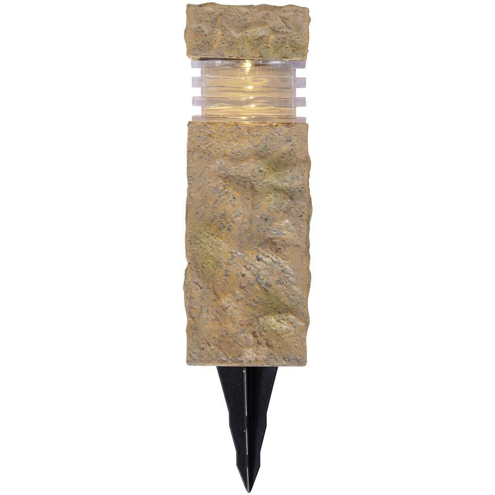 Hampton Bay Sand Stone Integrated LED Outdoor Solar Landscape Rock Pillar Path Light (2-Pack)