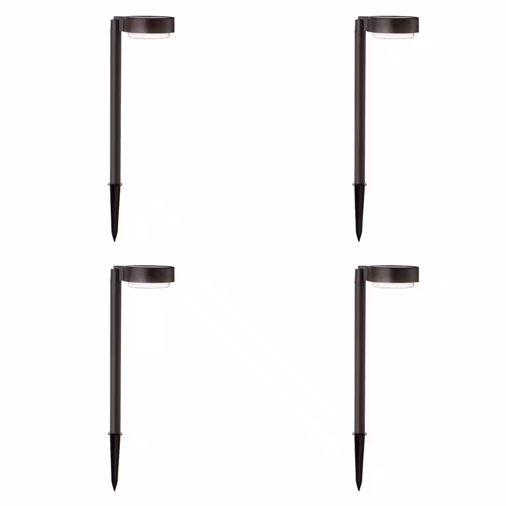 Hampton Bay Aniston Oil-Rubbed Bronze LED Outdoor Solar Landscape Path Lights 15 Lumens (4-Pack)