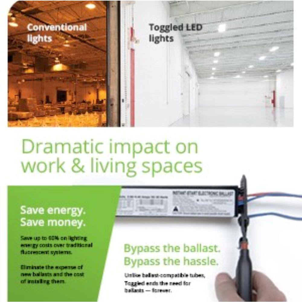 toggled 12-Watt 36 in. Linear Dimmable T8 LED Tube Light Bulb 5000K Daylight (30-Pack)