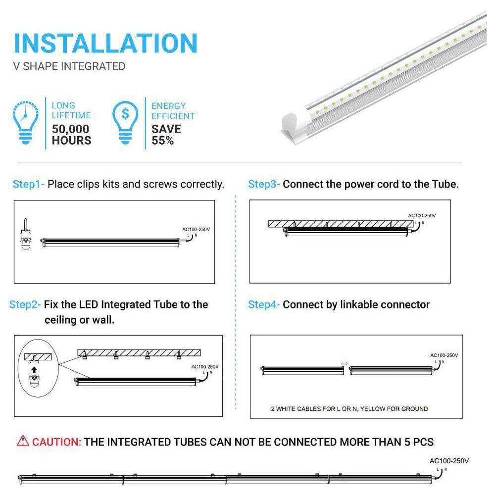 BEYOND LED TECHNOLOGY 60-Watt Equivalent 94 in. Linear Tube LED Light Bulb 6500K (4-Pack)