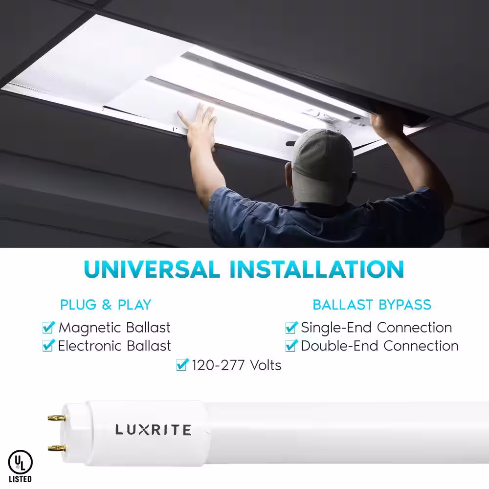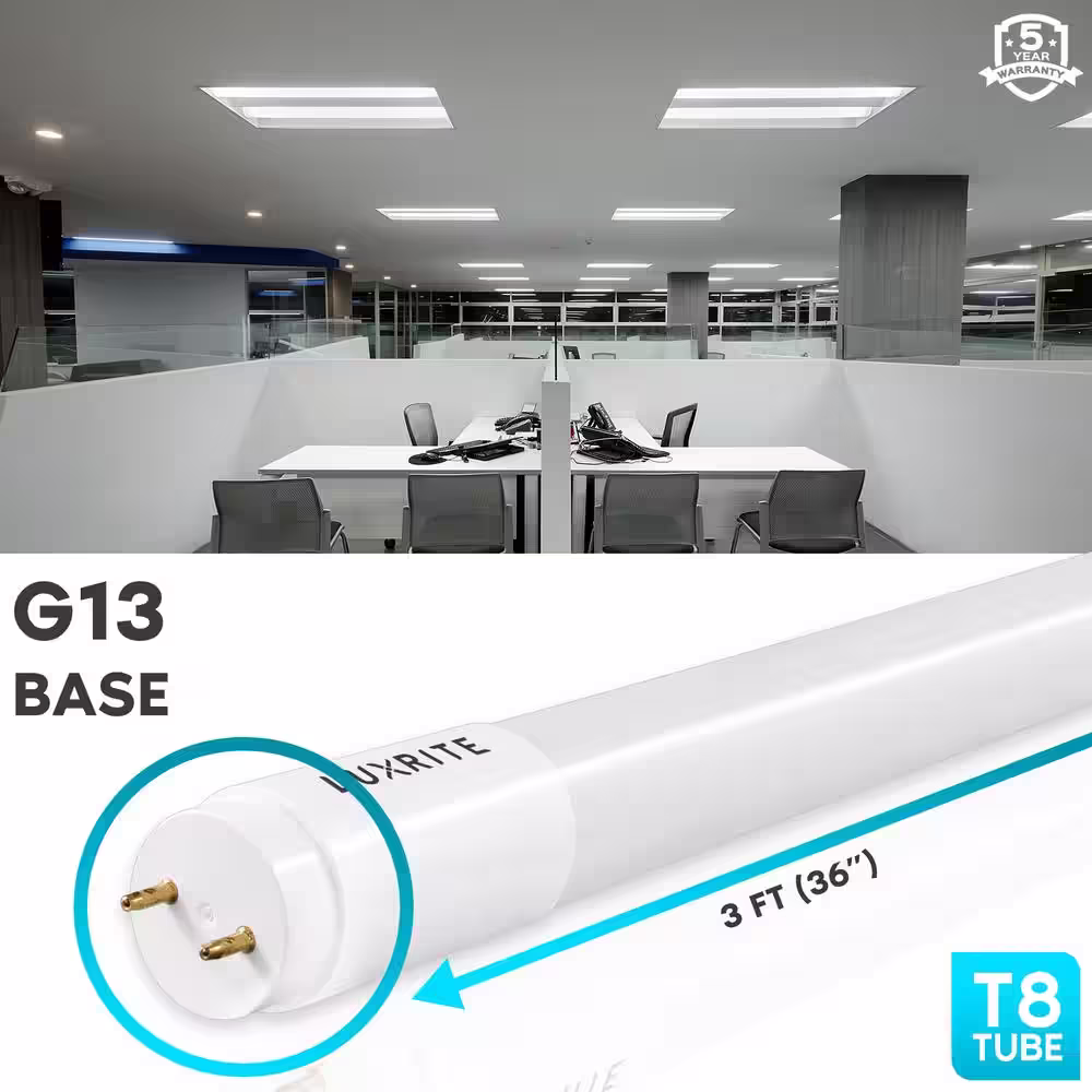 ETi 4 ft. 32-Watt Equivalent Linear T8 Direct Replacement LED Tube Light Bulb 5000K Daylight 2200 Lumens (25-Pack)