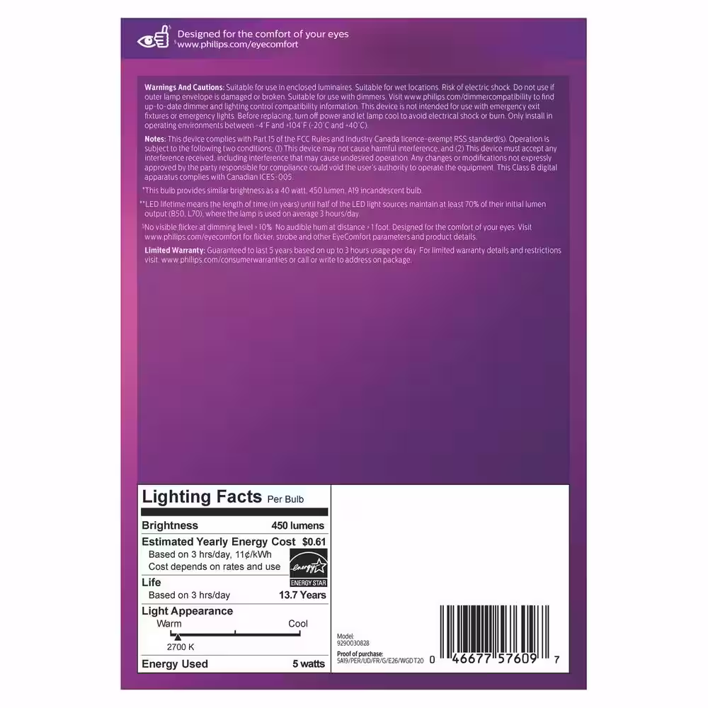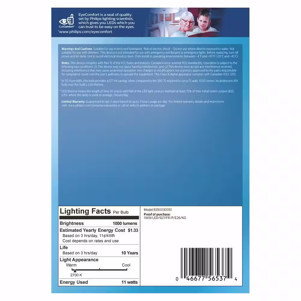 Philips 75-Watt Equivalent A19 Non-Dimmable E26 LED Light Bulb Soft White 2700K (4-Pack)