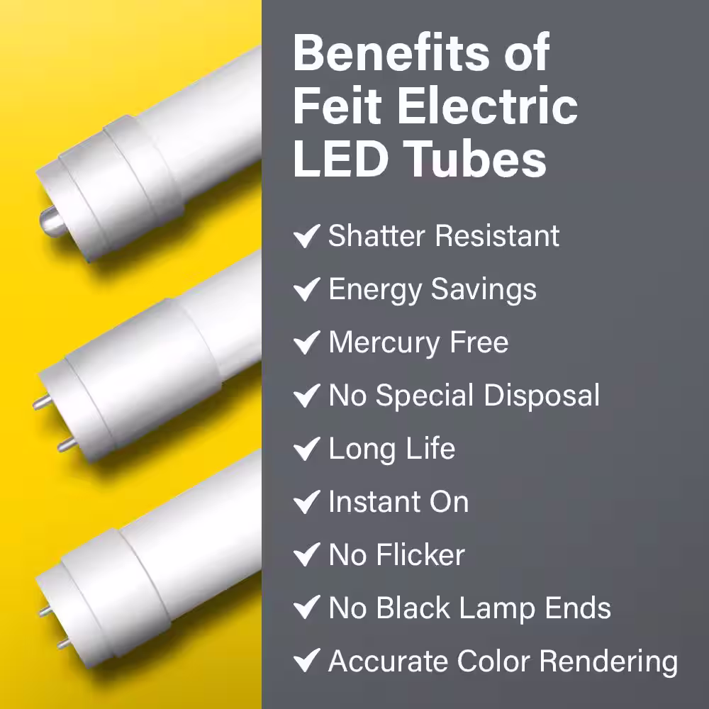 Feit Electric 14-Watt 4 ft. T8/T12 G13 Type A Plug and Play Linear LED Tube Light Bulb, Cool White 4100K (12-Pack)