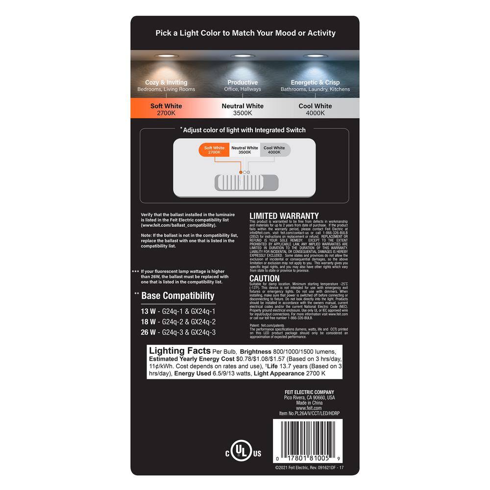 Feit Electric 12-Watt 21 in. T5 G5 Type A Plug and Play Linear LED Tube Light Bulb, Bright White 3000K