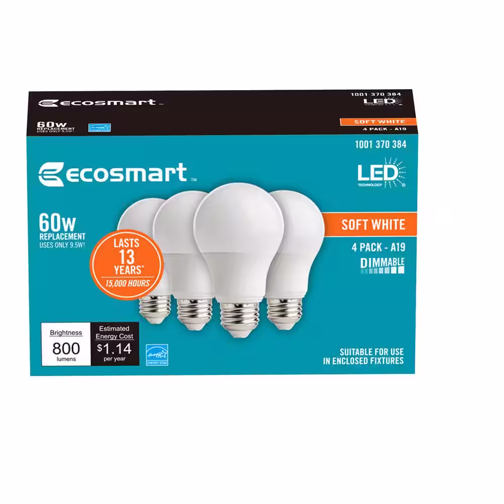 EcoSmart 60-Watt Equivalent A19 Dimmable Energy Star LED Light Bulb Soft White (16-Pack)