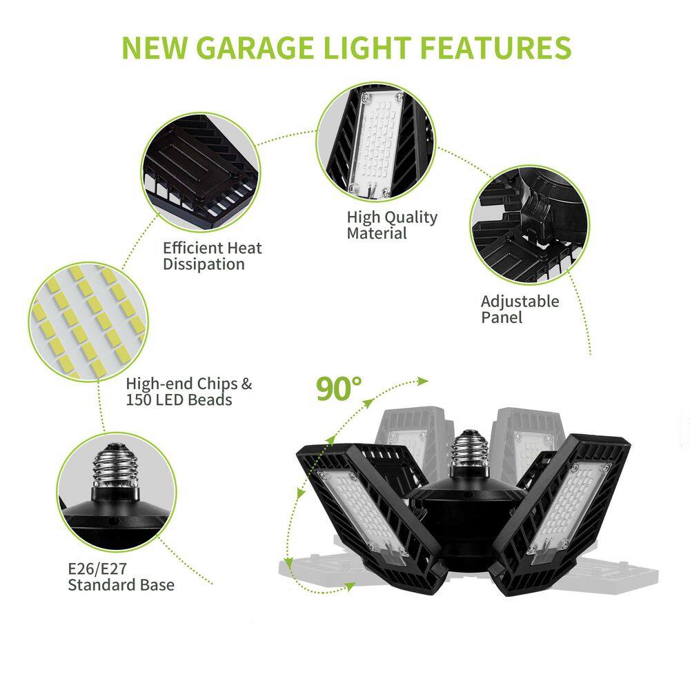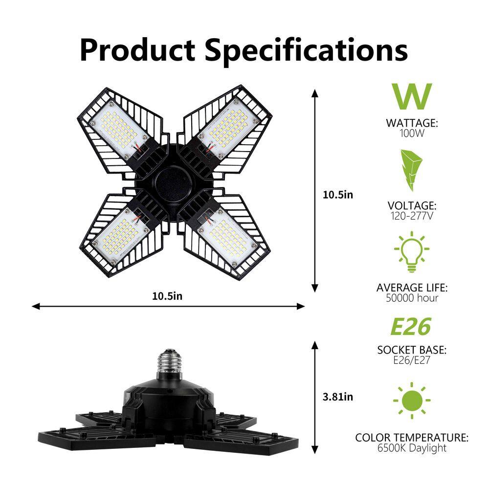 Pinegreen Lighting 700-Watt Equivalent 12,000 Lumens LED 4-Panel Garage E26 Bulb 6500K Deluxe Daylight (4-Pack)
