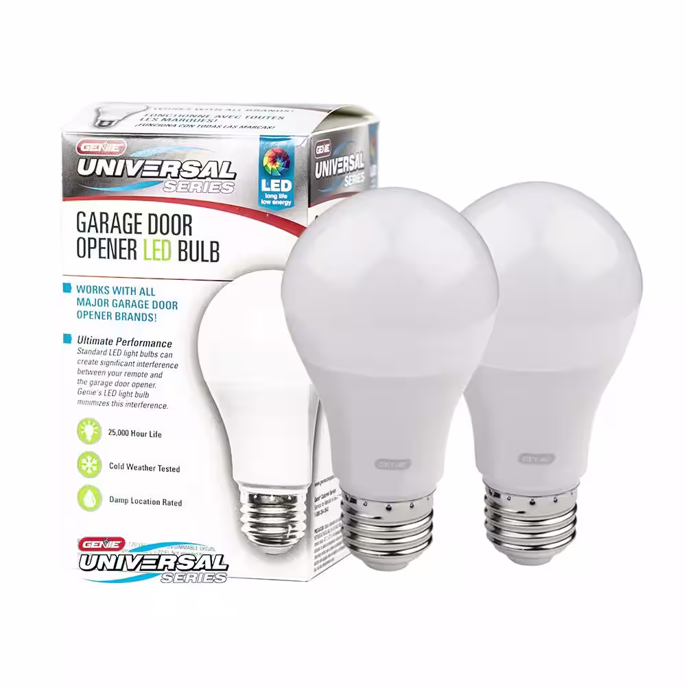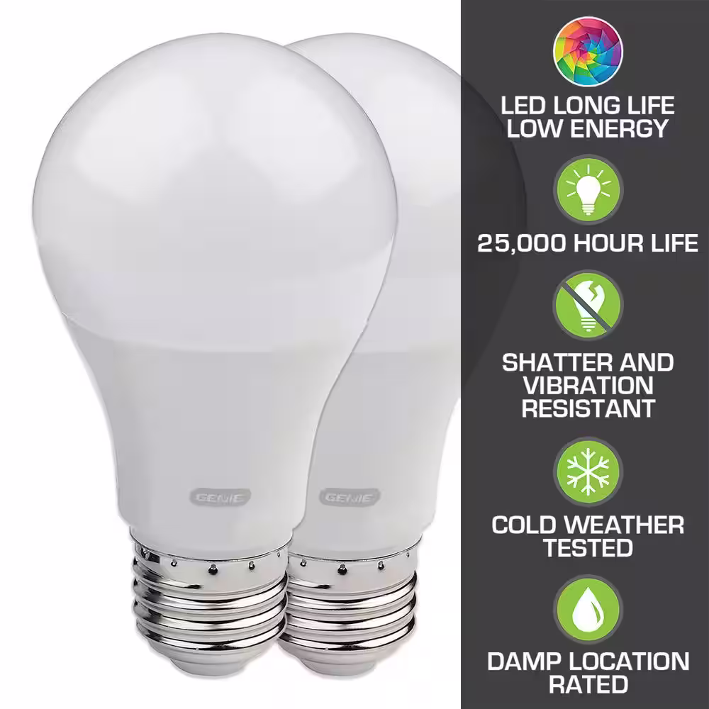 Genie 60-Watt Equivalence A19 Universal Garage Door Opener LED Light Bulb 4000K (2-Pack)