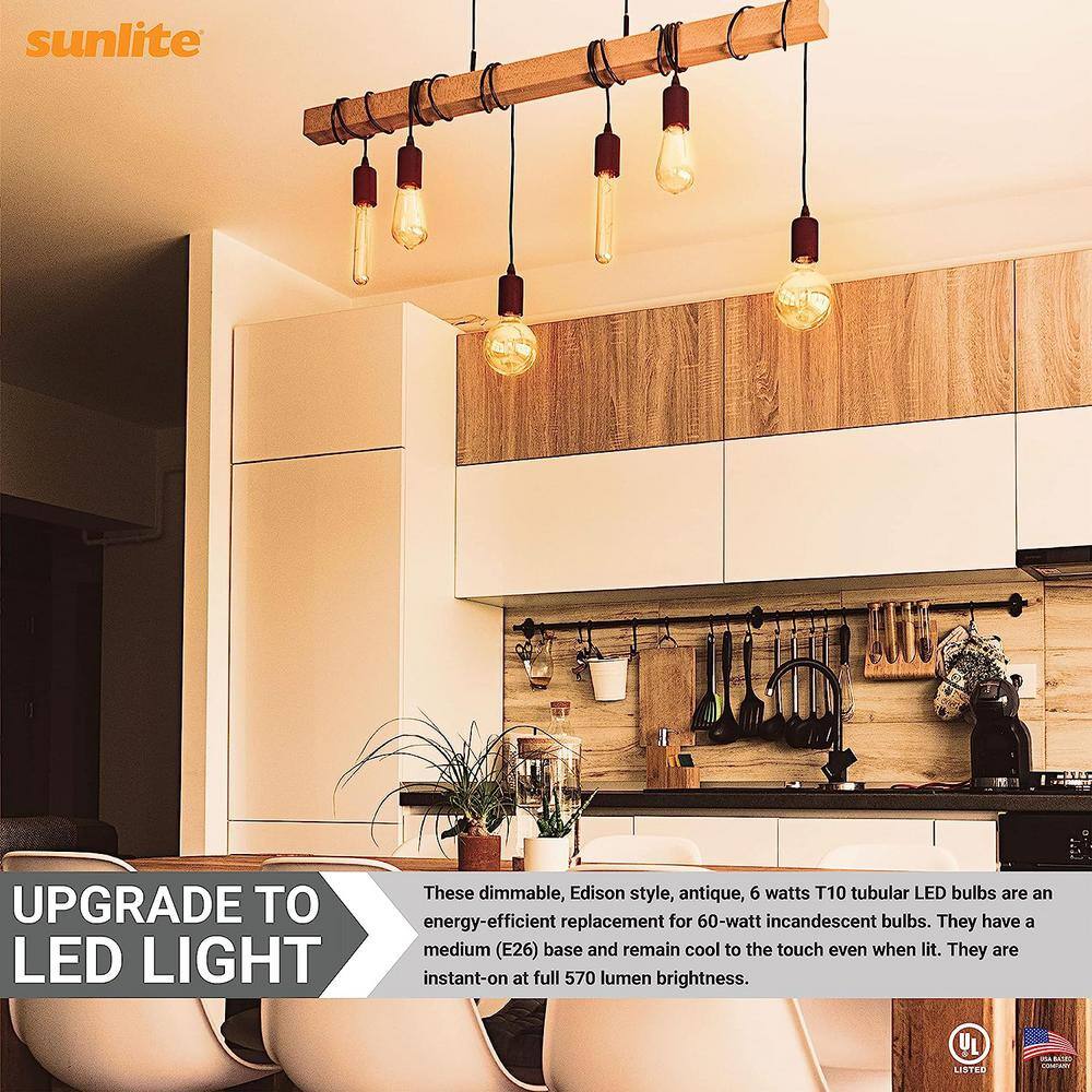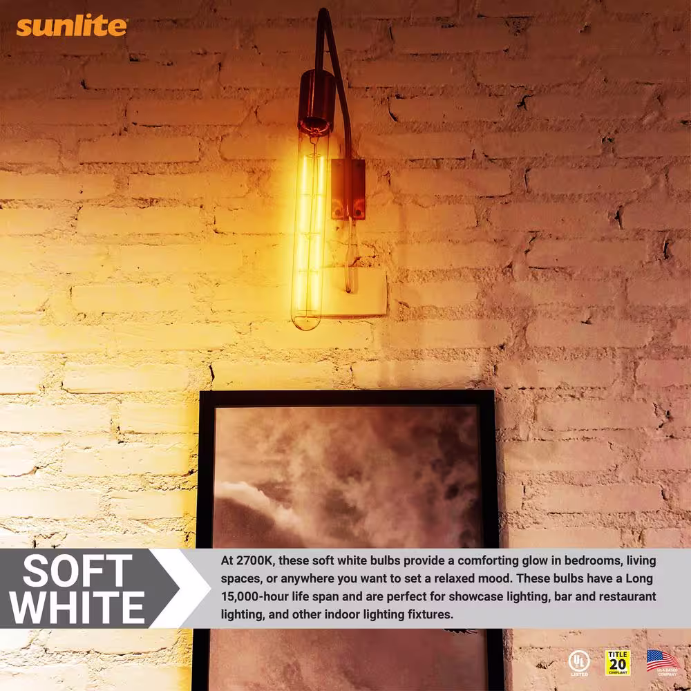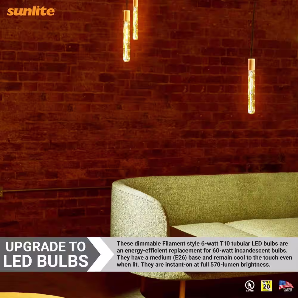 Sunlite 60-Watt Equivalent 8.75 in. T10 Bulb Shape E26 LED Light Bulb, Warm White 2700K, (5-Pack)