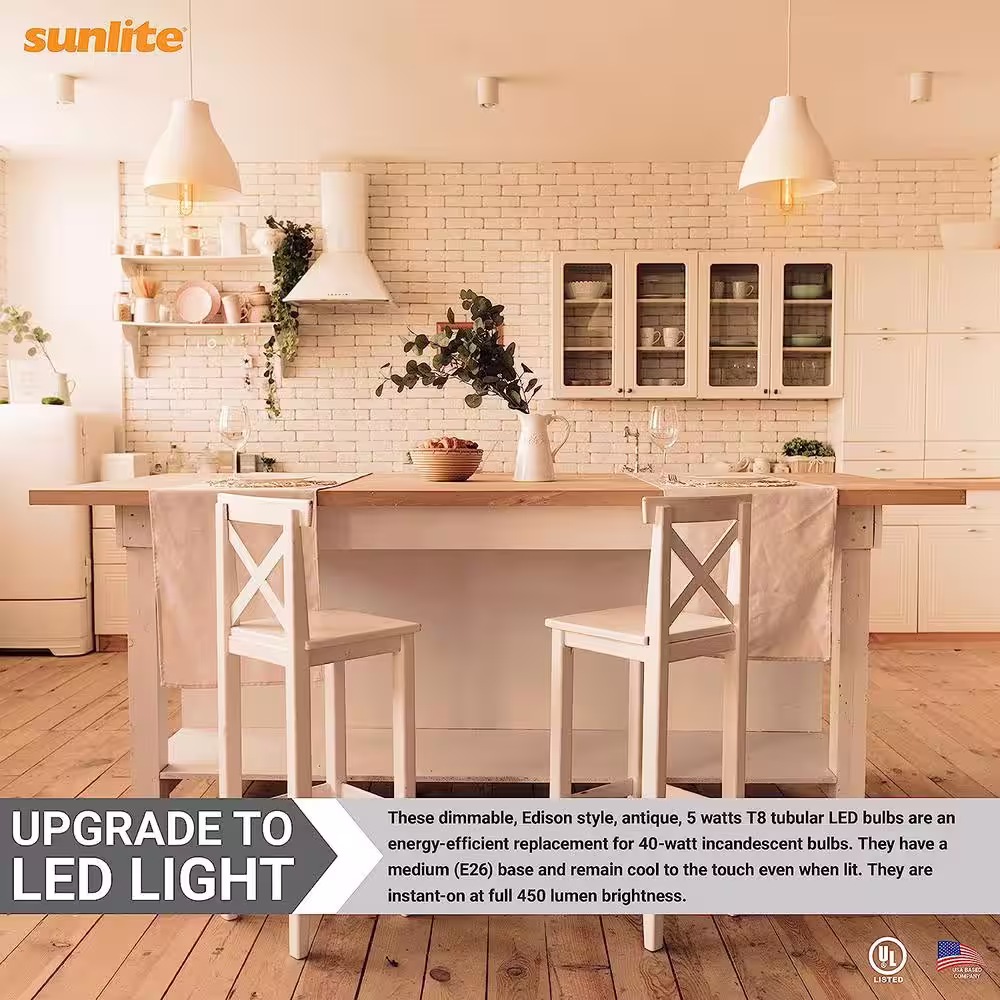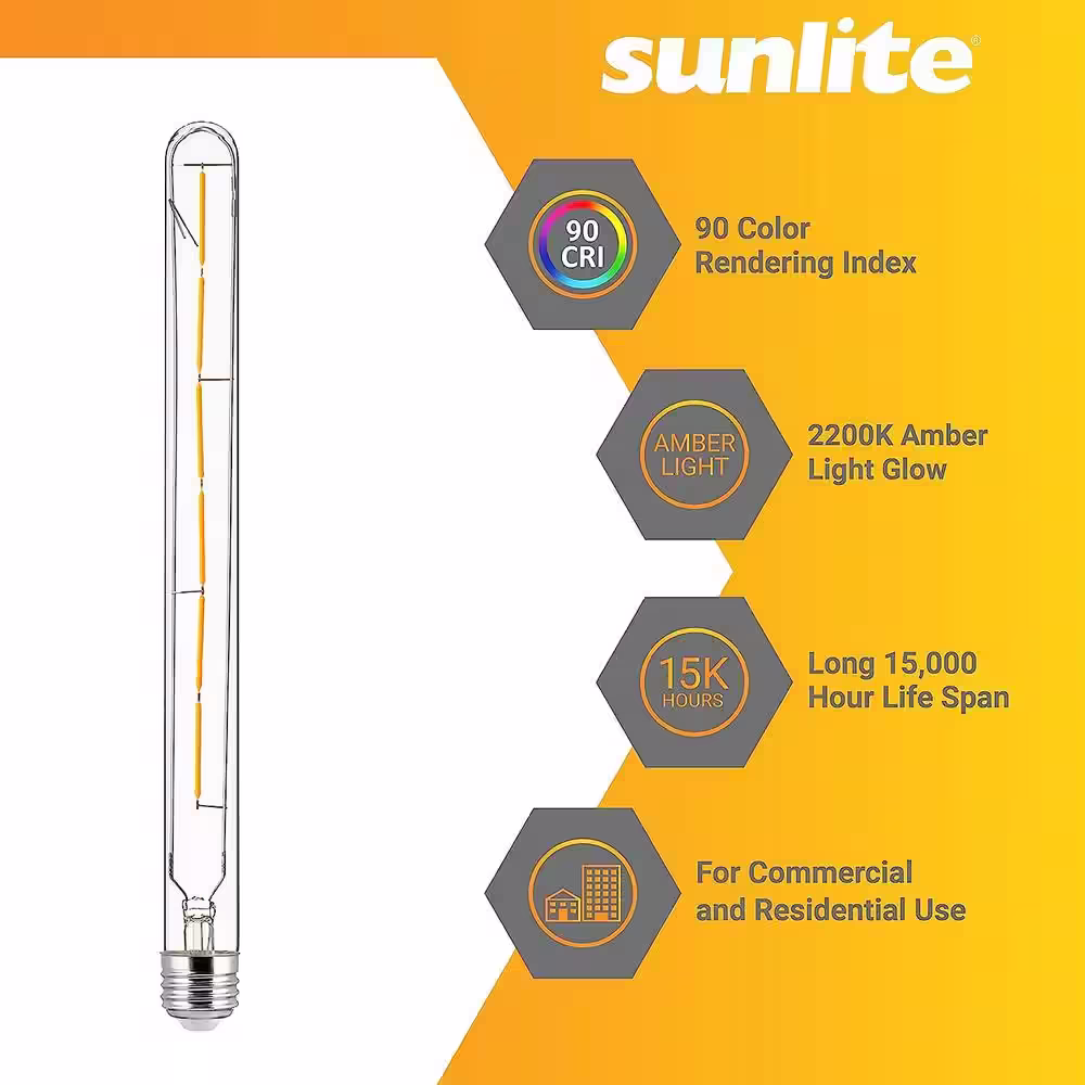 None 25-Watt Equivalent 4.95 in. T10 Tubular E26 Base LED Bulbs, Amber 2200K (6-Pack)