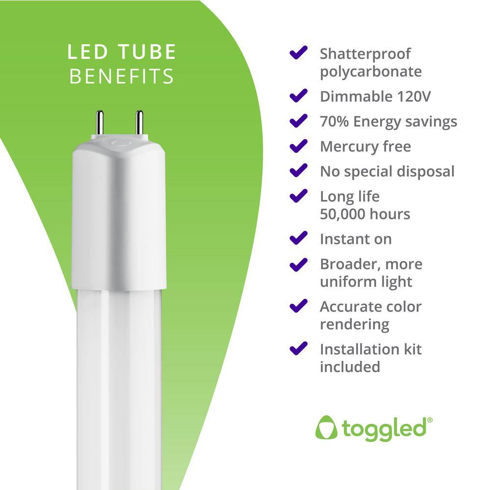toggled 16-Watt 32-Watt Equivalent 4 ft. Linear Tube LED Light Bulb 5000k Daylight 277-Volt T8/T12 (2-Pack)