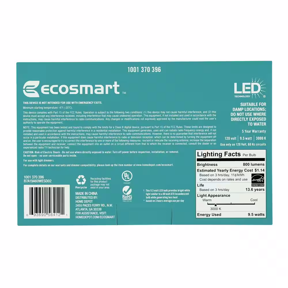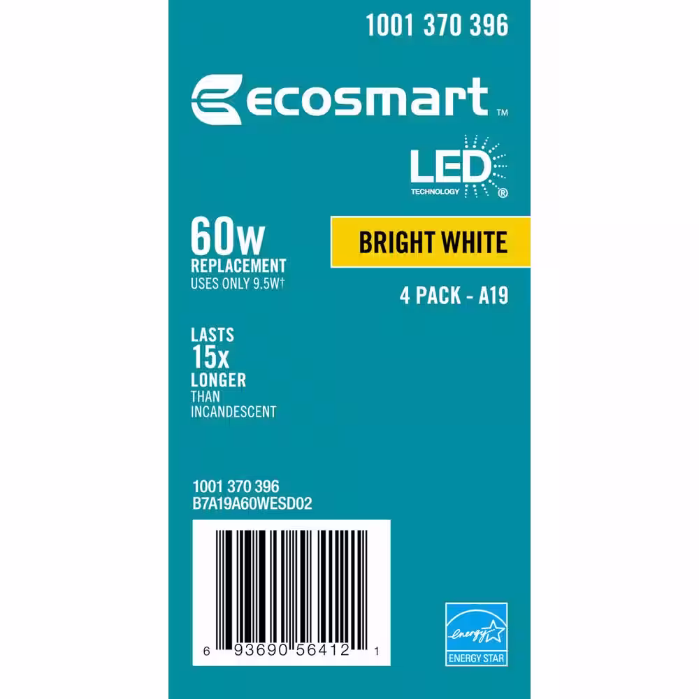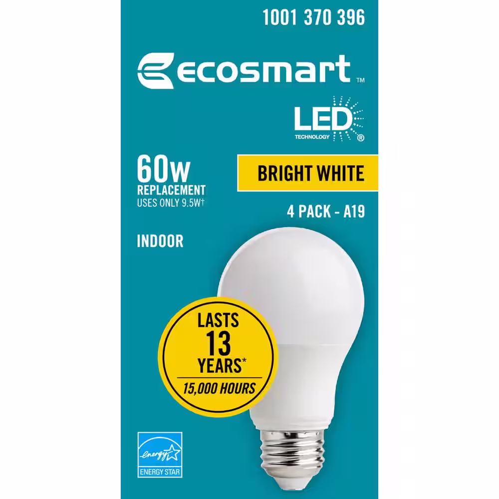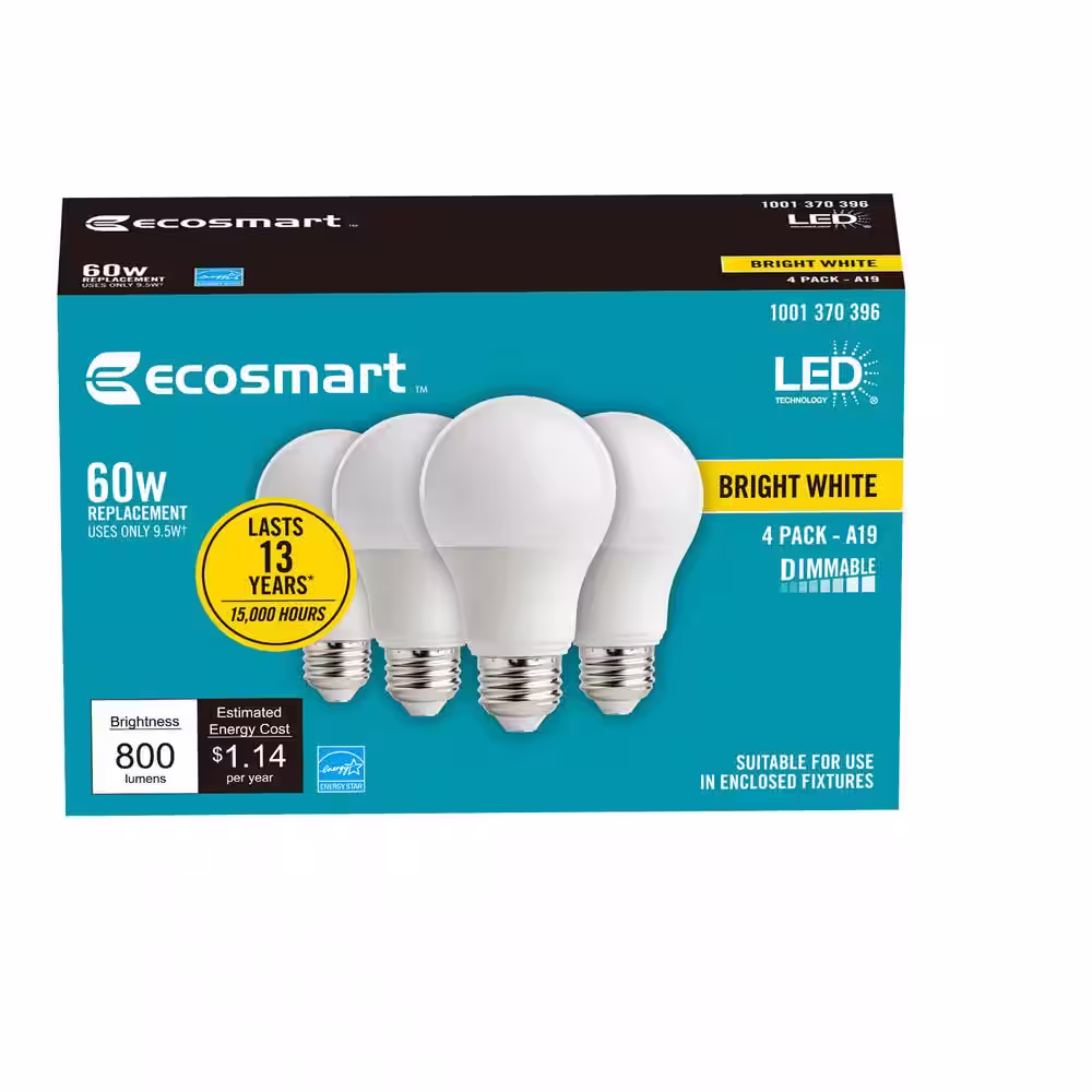 EcoSmart 60-Watt Equivalent A19 Dimmable ENERGY STAR LED Light Bulb Bright White (16-Pack)